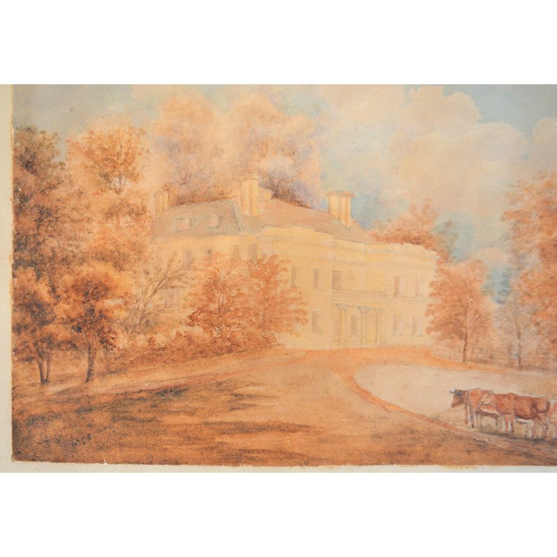 Veche acuarela peisaj pe hartie lipita pe un suport de hartie, nu este semnata sau datata.