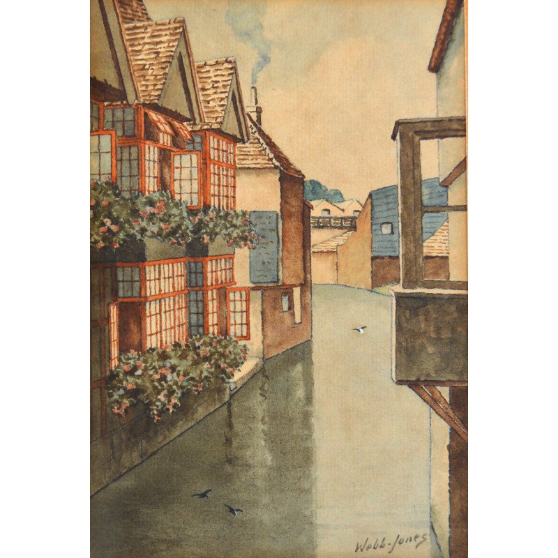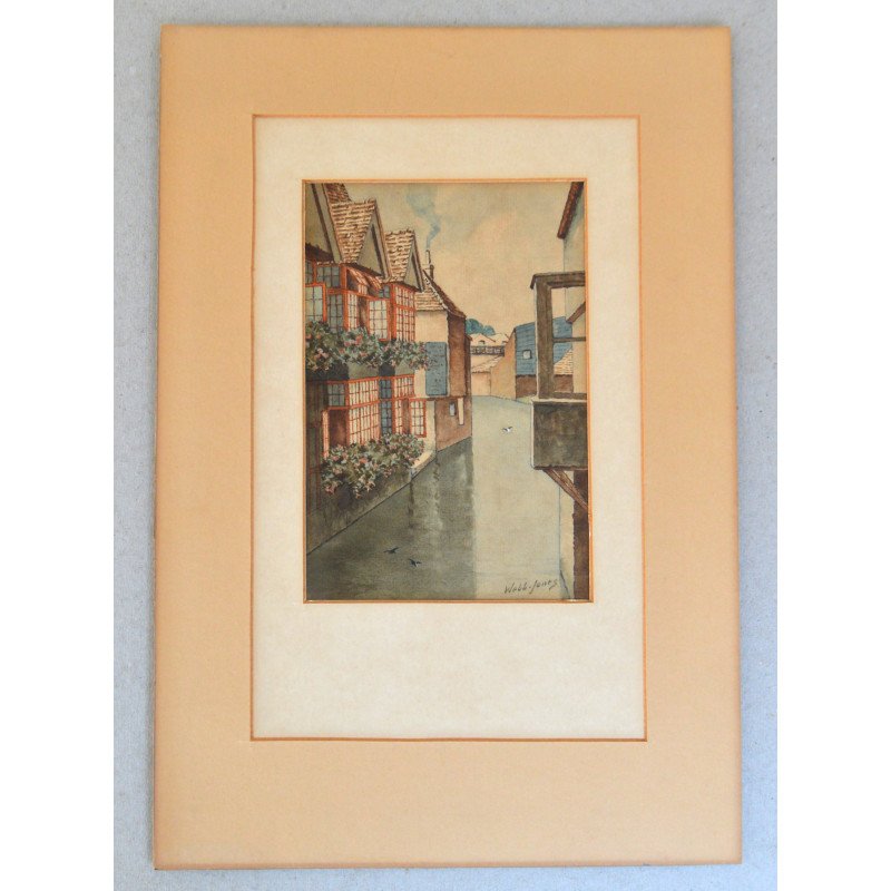 Webb-Jones "The weavers Canterbury" acuarela veche.