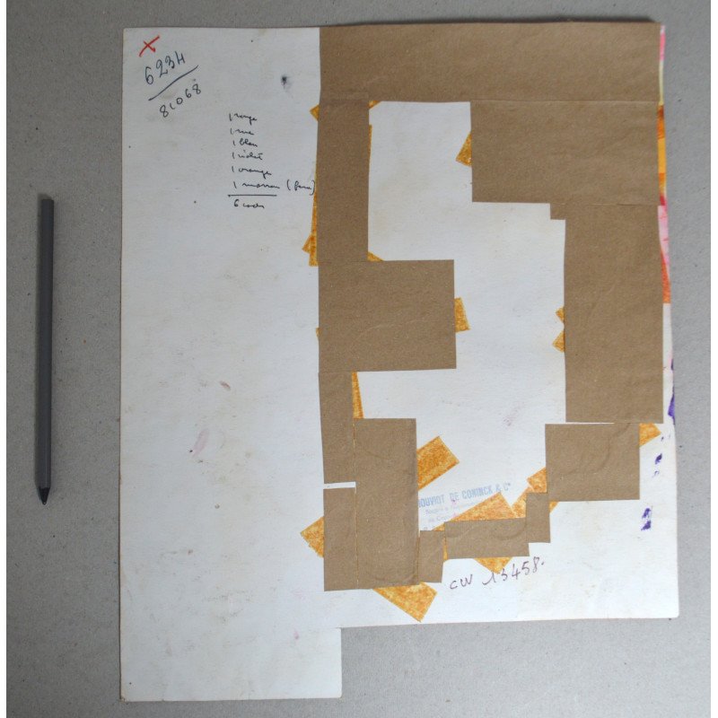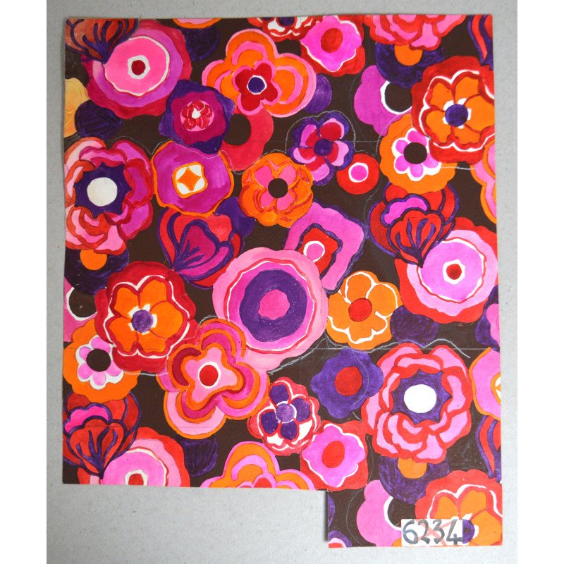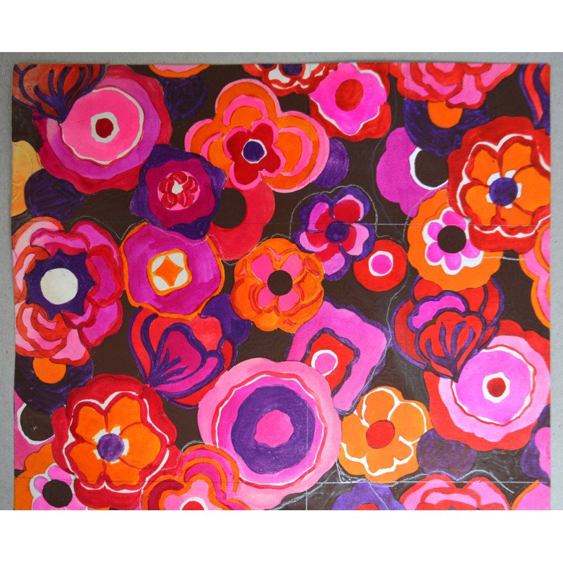 "Thouviot de Coninck & co" design model floral pentru imprimeuri textile acuarela cca 1970.