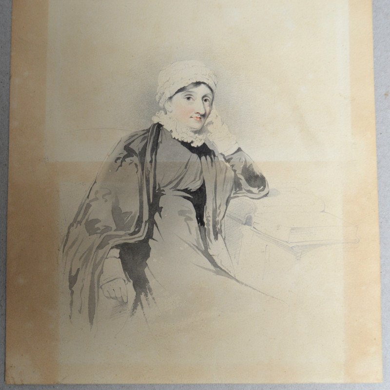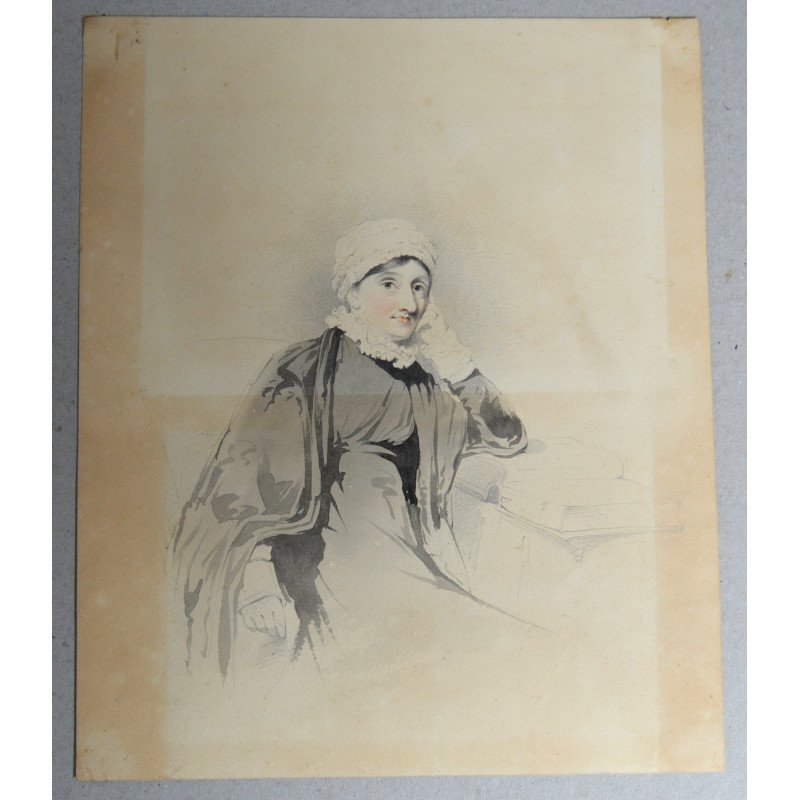 "Femeie cu boneta" acuarela veche sec 18-19.