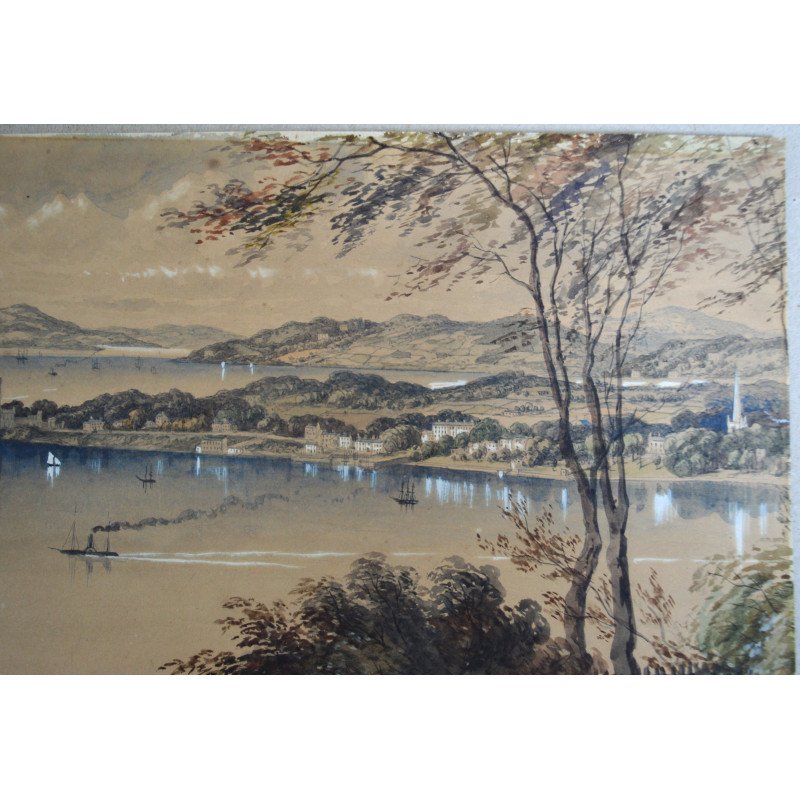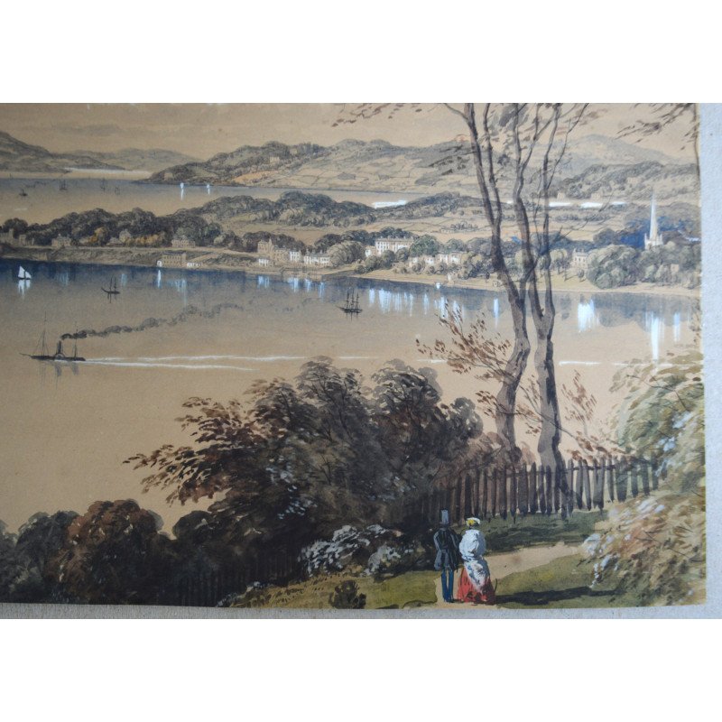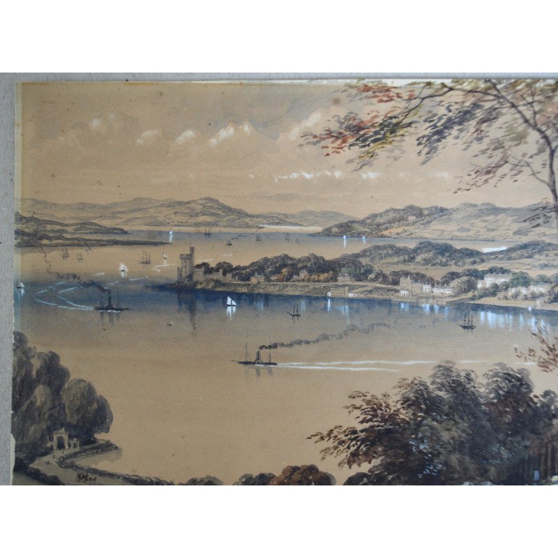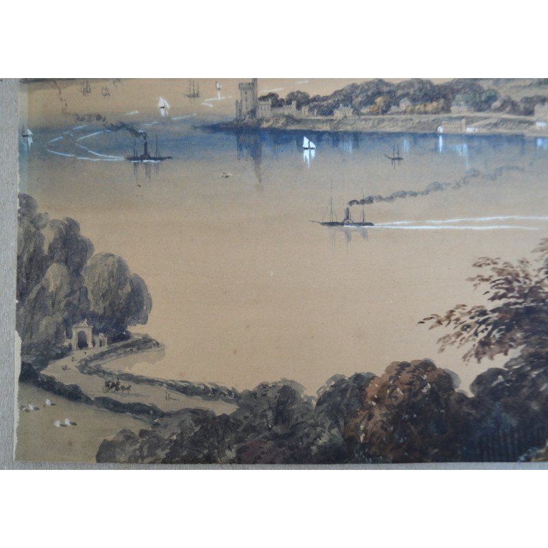 Acuarela veche copie dupa litografia "Cork river & Blackrock Castle from above the Glanmire Road" publicata de Newman &Co la Londra, cca 1850-1870.