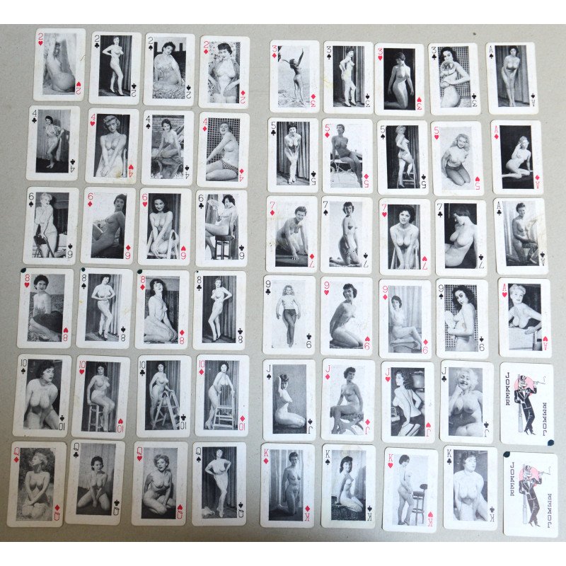 Set cărți de joc cu fete pin-up nud anii 1940/50.