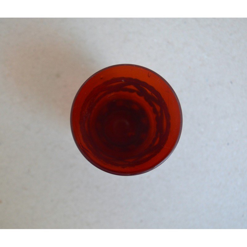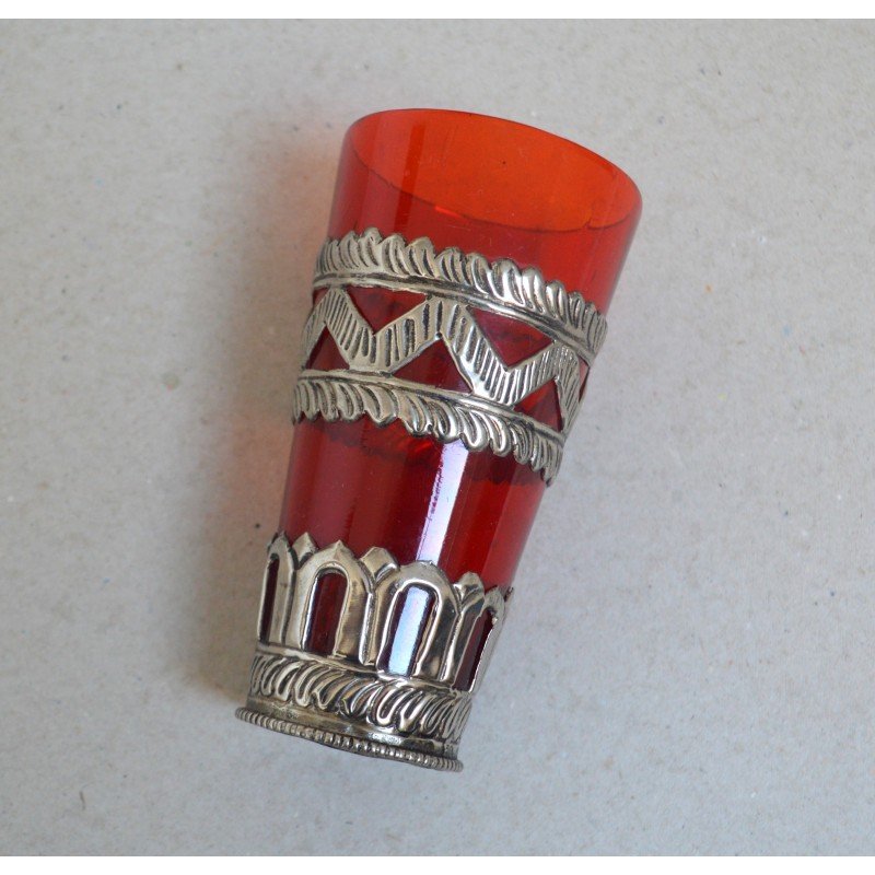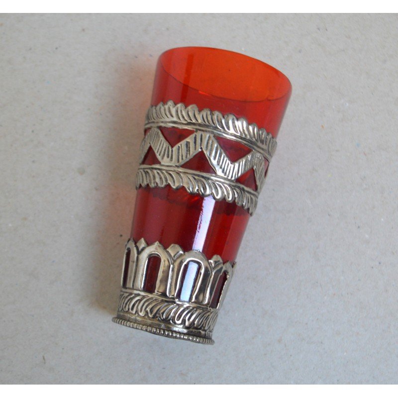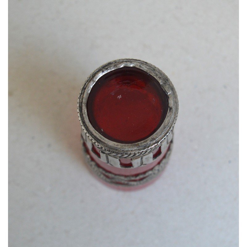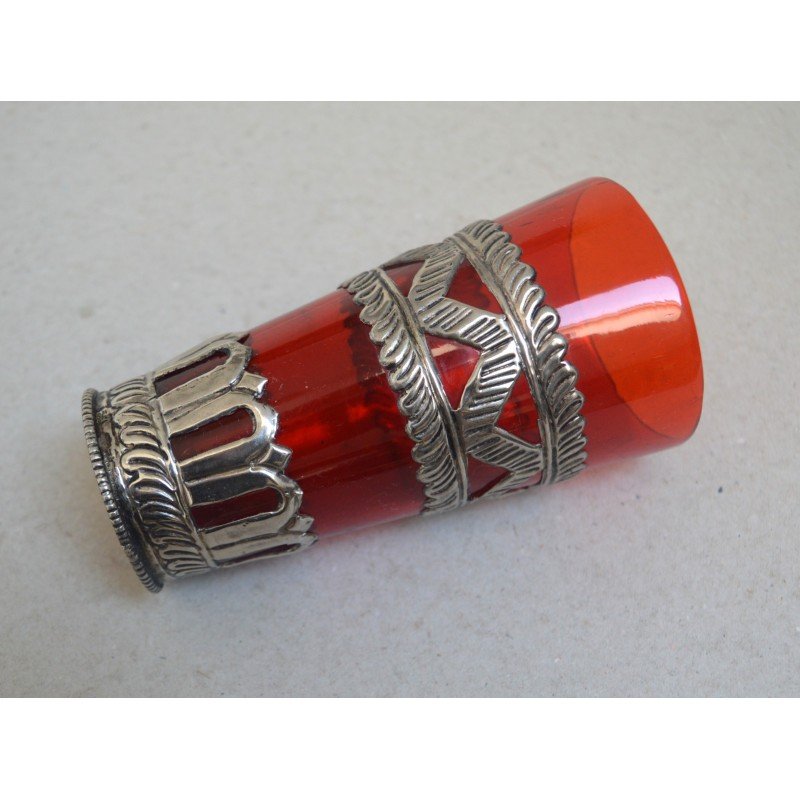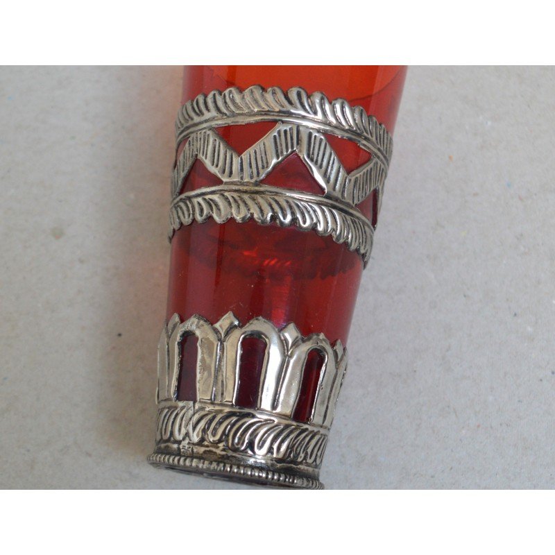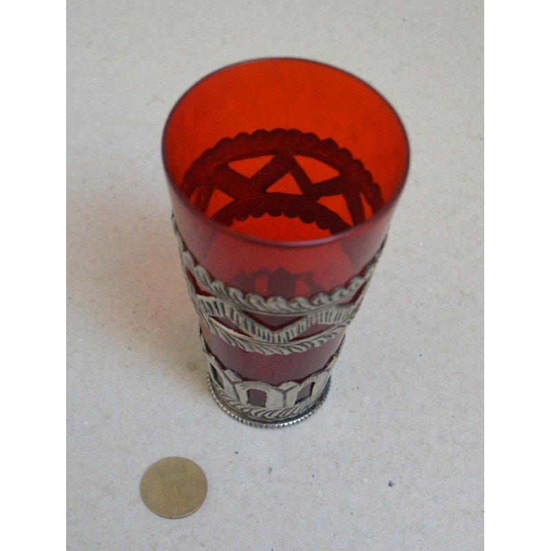 Vechi pahar Ruby Red East Asian montura metal alb posibil argint. Nu este marcat.