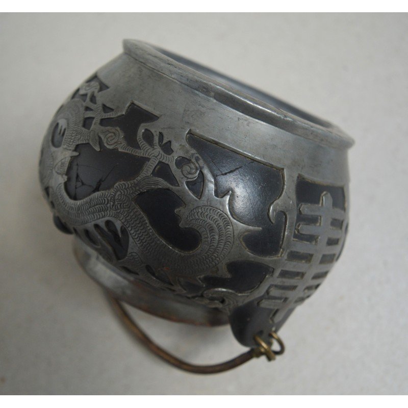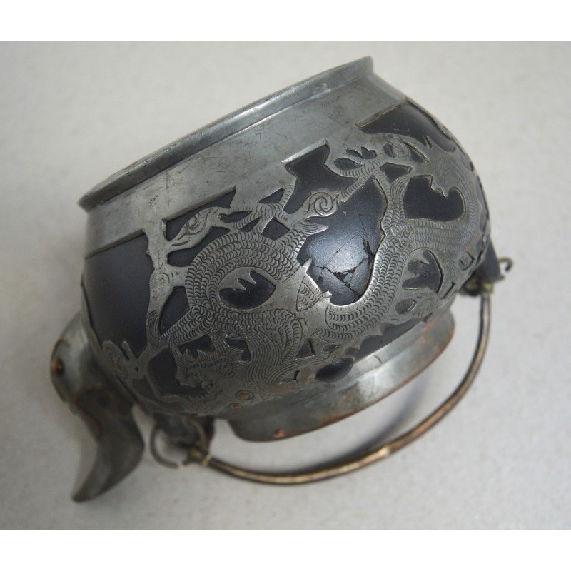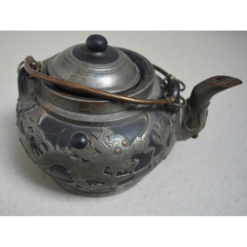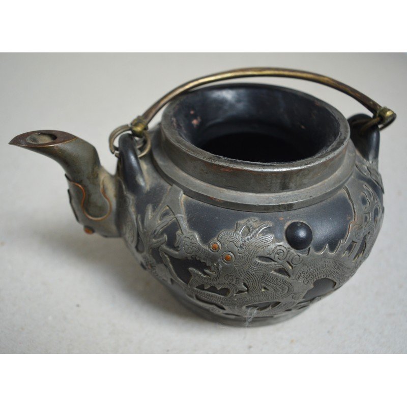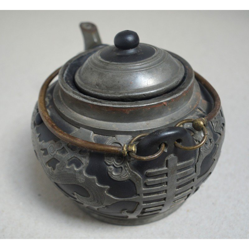 Ceainic Hor Chung Weihaiwei de ceramica si dragon de cositori China cca 1920.