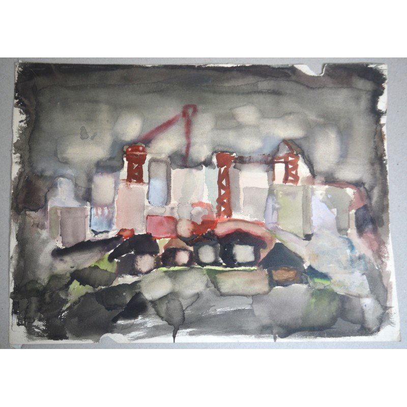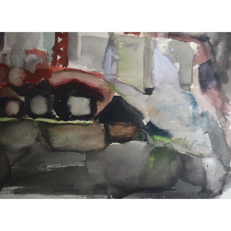 Stefan Pristavu "Santier" acuarela 1981.