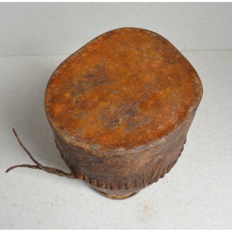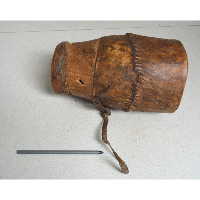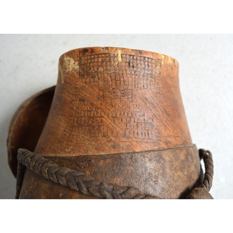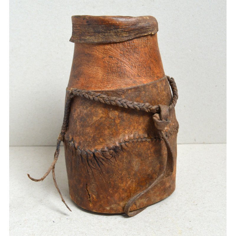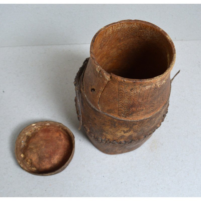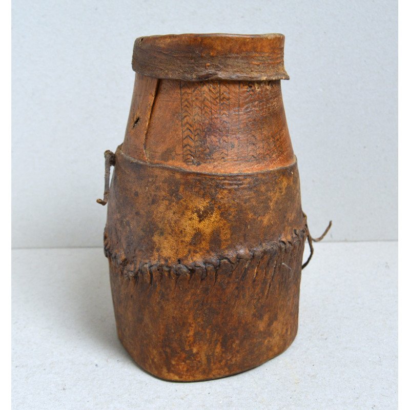 Vechi vas utilitar de lemn si piele pentru pastrat laptele Kenya.