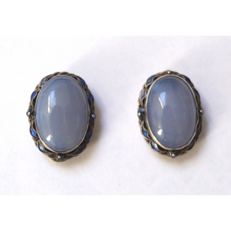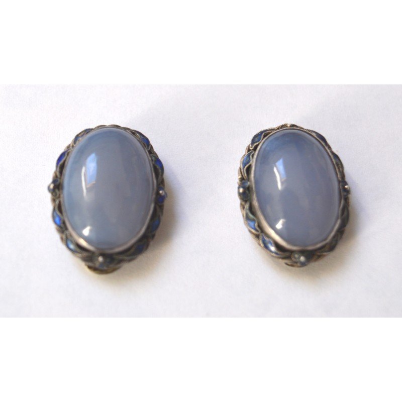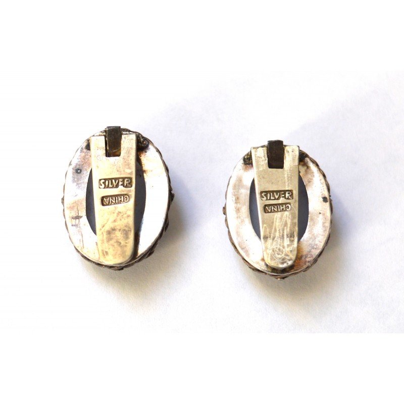 Set clips pentru esarfa sau rever camasa din argint cu jad natural si email. Marcaj SILVER CHINA