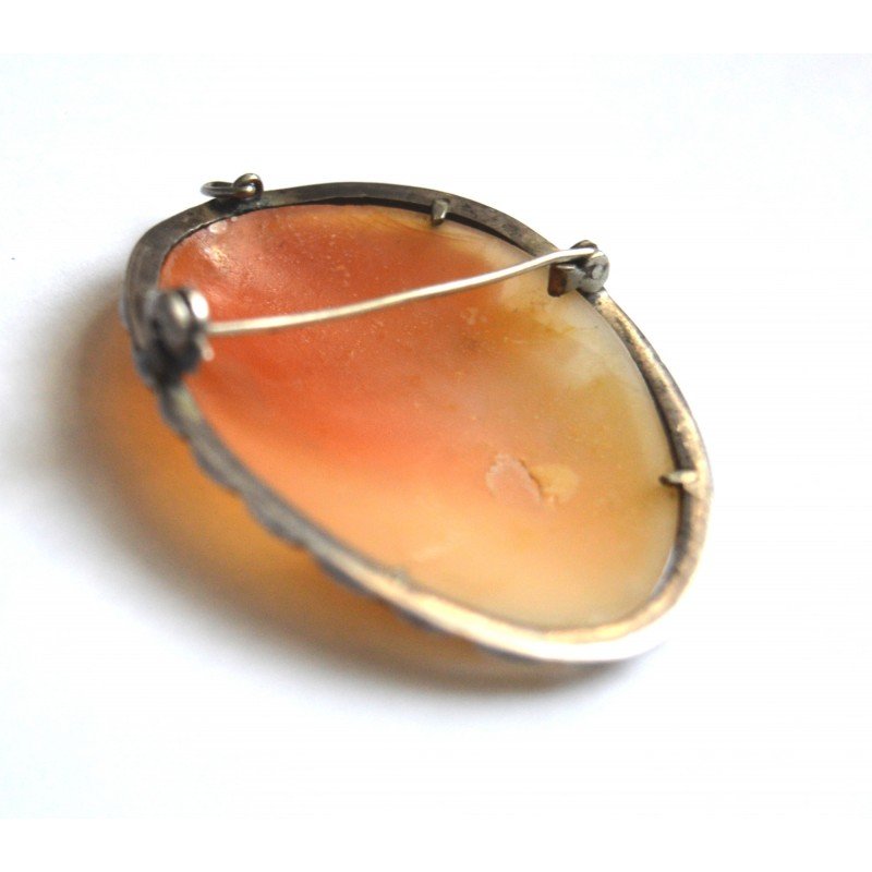 Brosa veche argint testat, nemarcat, cu camee naturala si marcasite