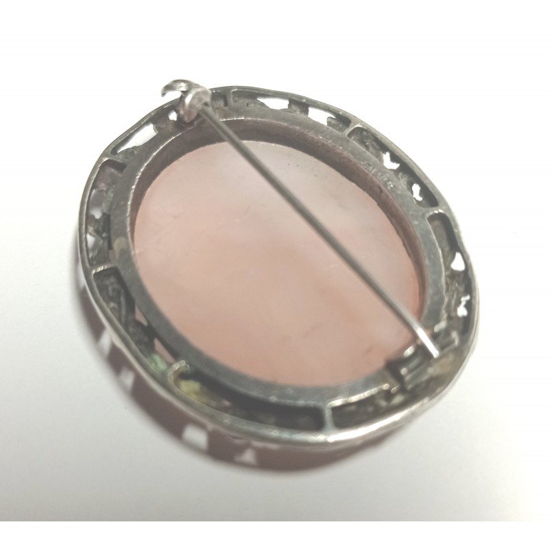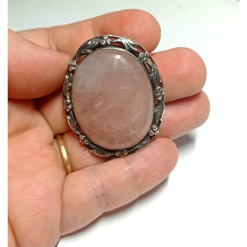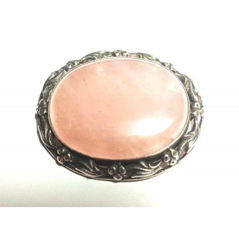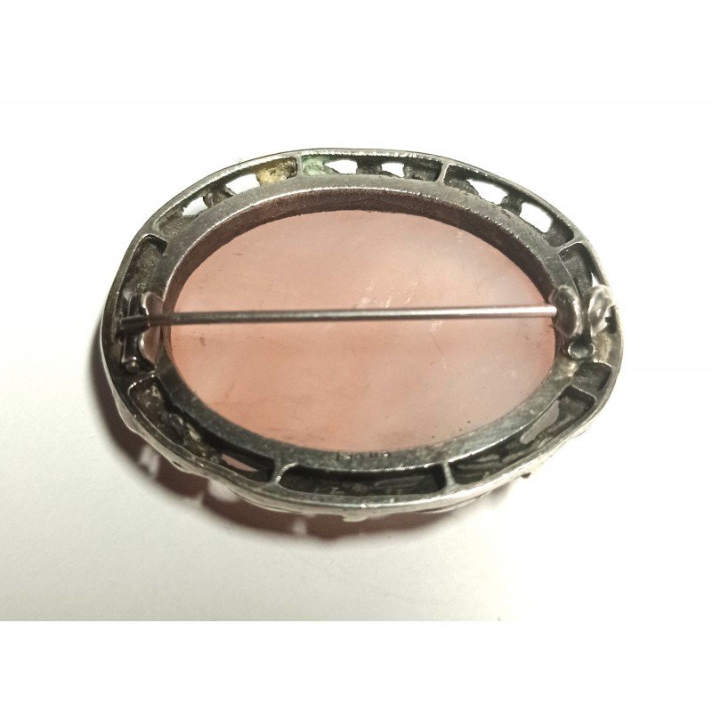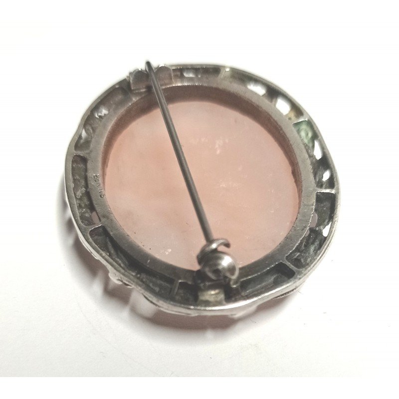 Brosa veche argint cu piatra cuart roz rainbow, calitate deosebita, marcaj SILVER