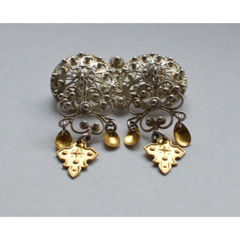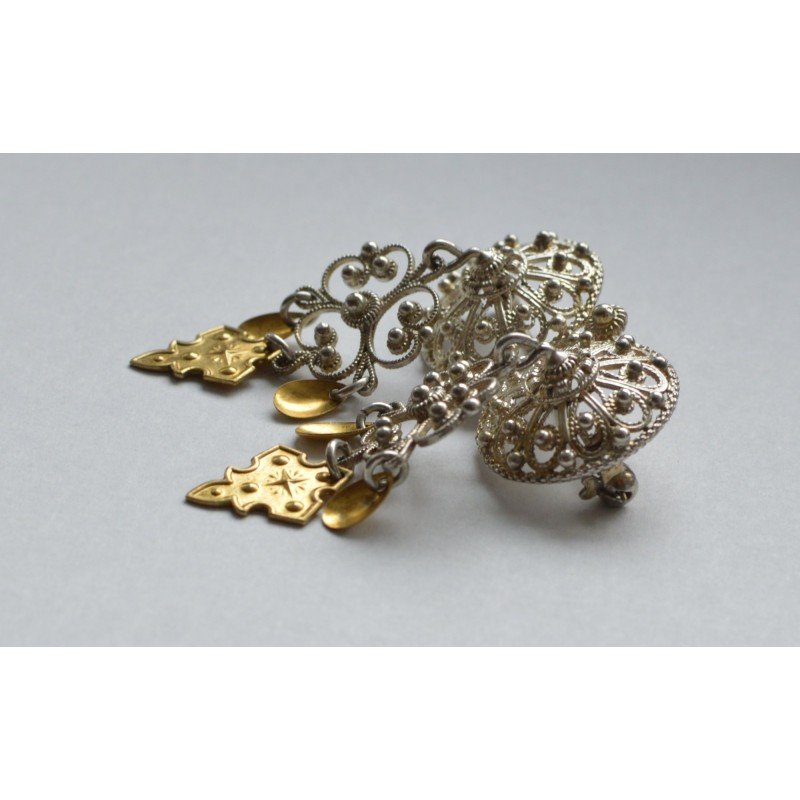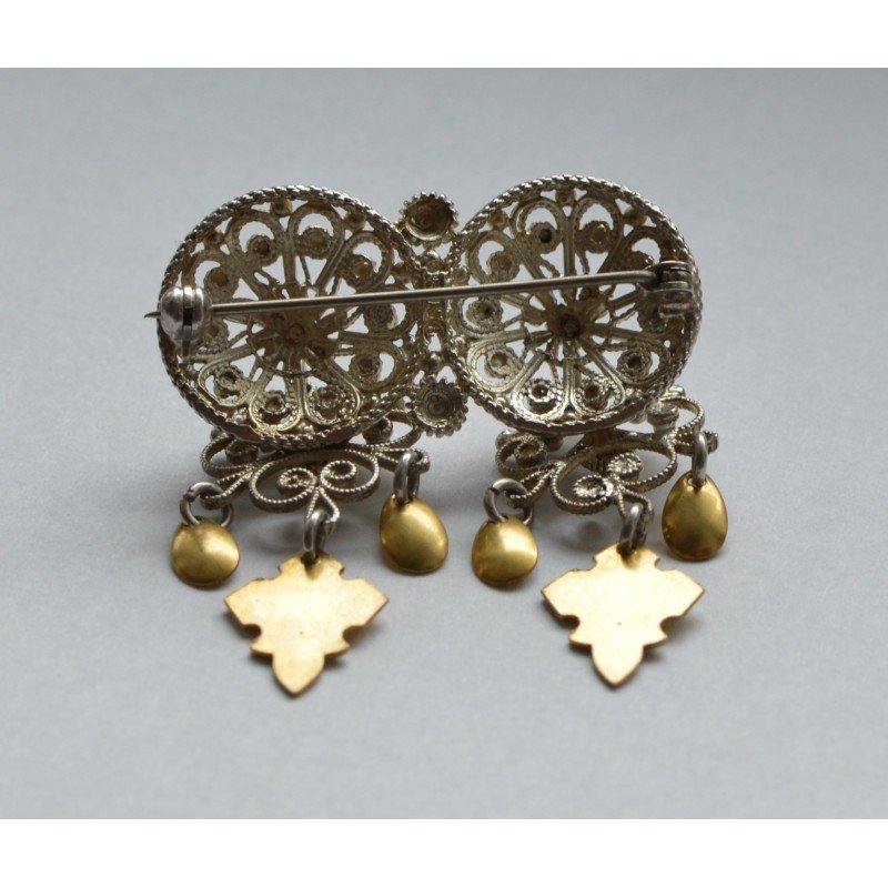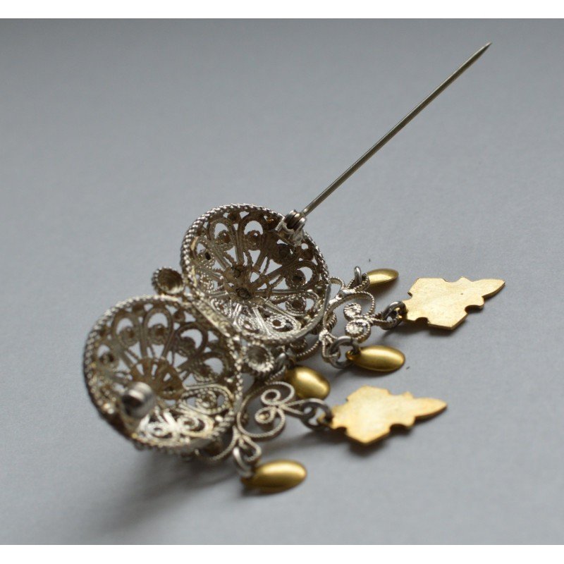 Brosa de nunta norvegiana, argint si argint aurit filigran, design si marcaj David Andersen 830S