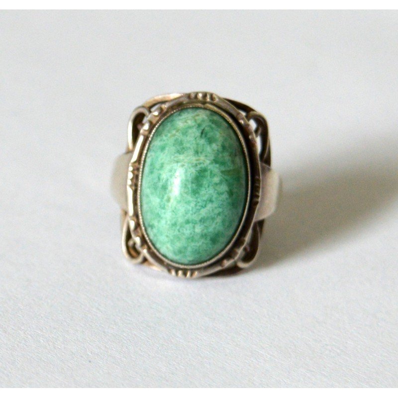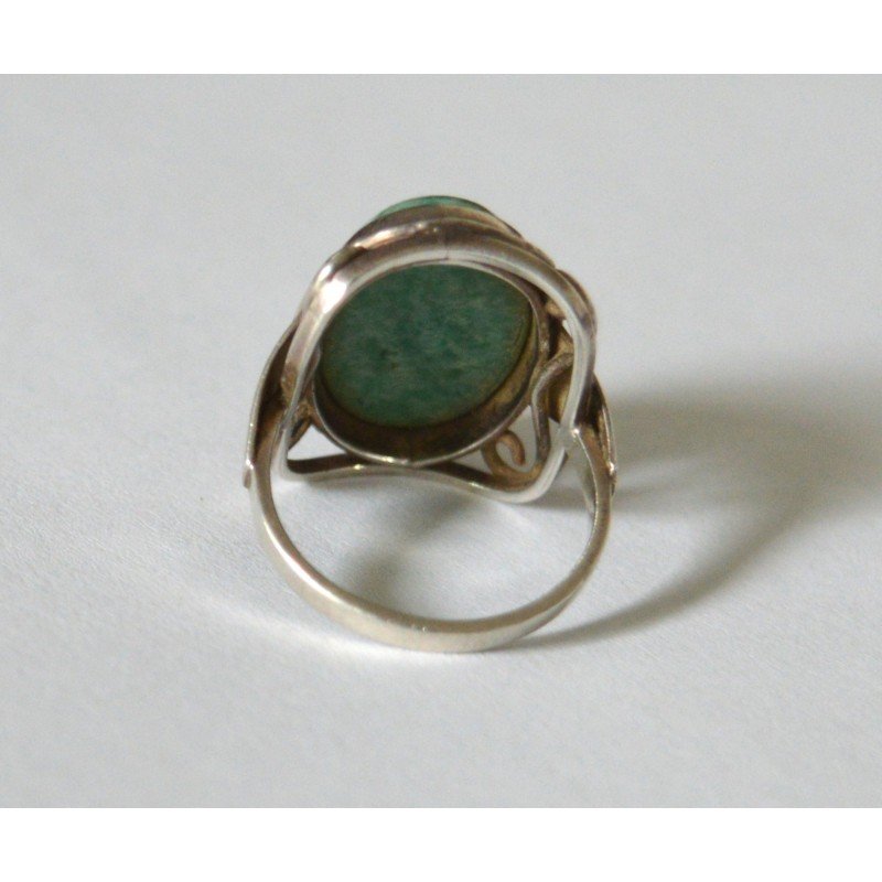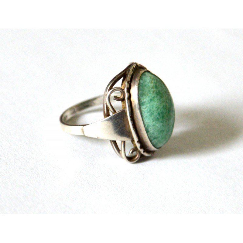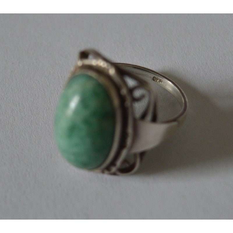 Inel vechi argint cu piatra naturala amazonit cabochon, marcaj 830