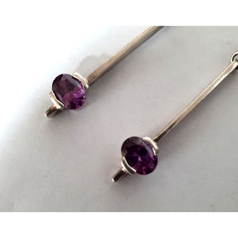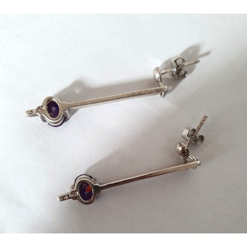 Cercei argint model bagheta cu cristal mov culoare ametist, marcat 925 si marcaj atelier