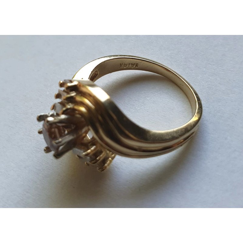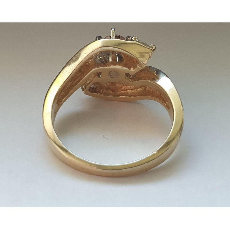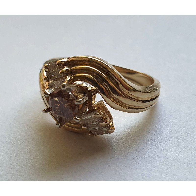 Inel aur 14k cu un frumos diamant briliant culoare cognac si alte sase diamante bagheta