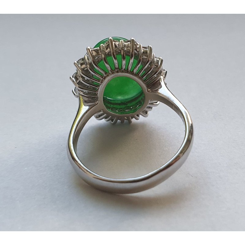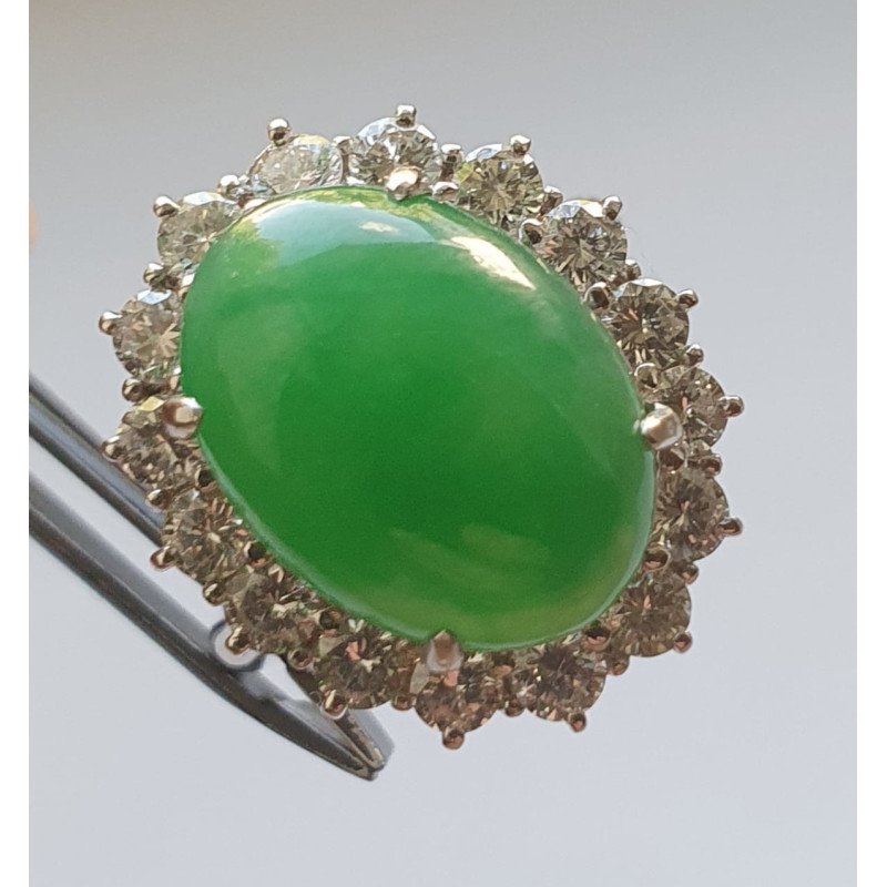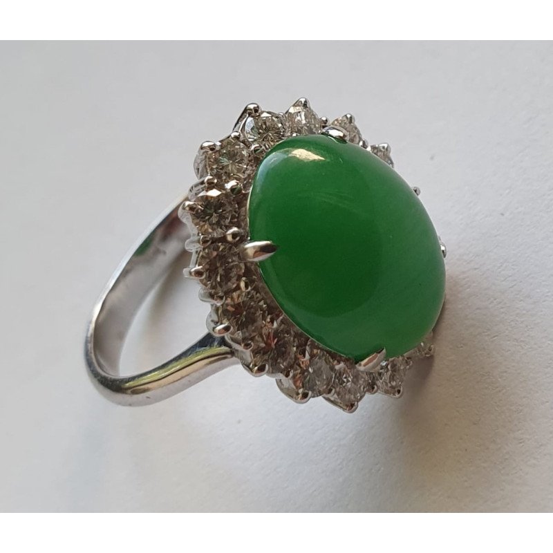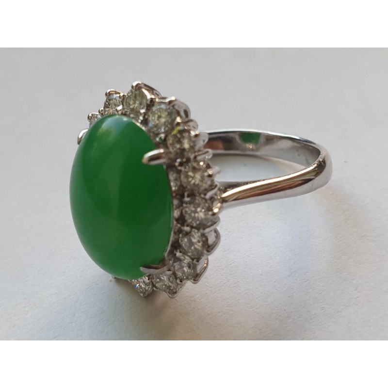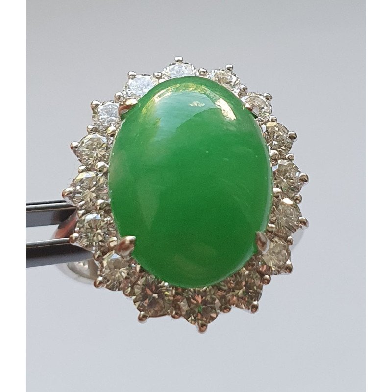 Piatra centrala jad prezinta un anturaj de 16 diamante briliant - 1.12 carate total