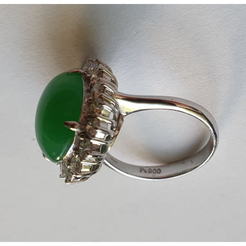 Inel platina cu jad cabochon central si diamante briliant cut