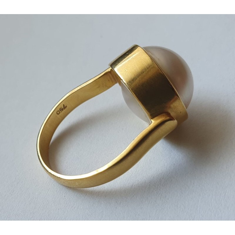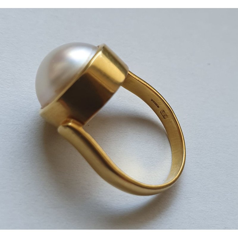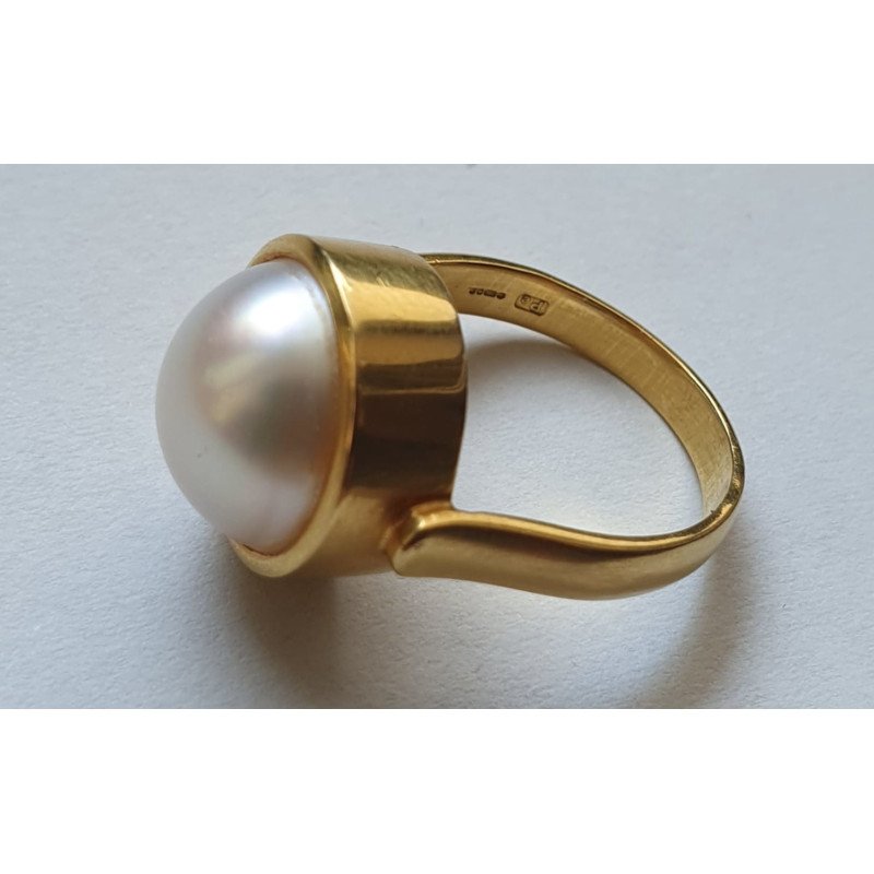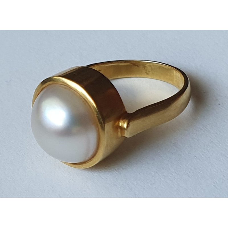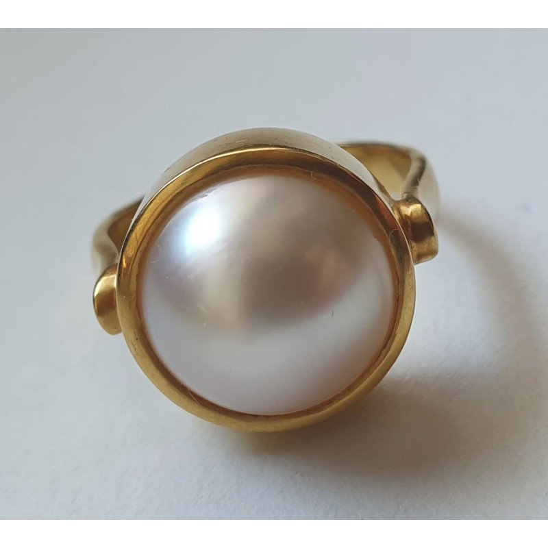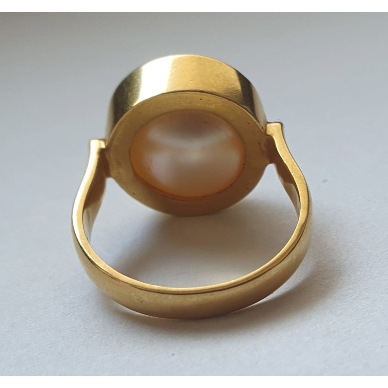 Inelul prezinta o frumoasa perla de 12 mm diametru intr-o montura bezel clasica lucrata masiv
