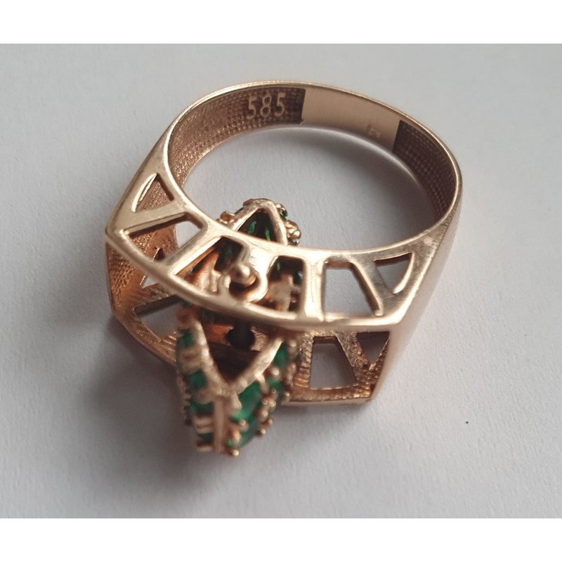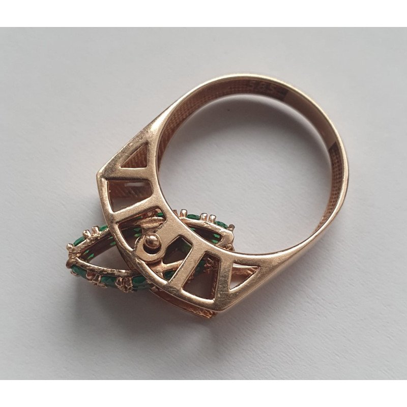 Pe partea superioara ineul prezinta o formatiune mobila cu pietre naturale verzi pe ambele parti, 12 pietre pe fiecare parte, diametru pietre aproximativ 1.5 mm