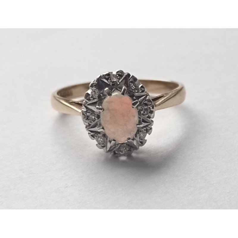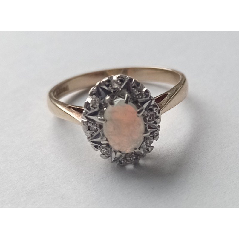 Inel aur 9k cu opal si diamante, marcaj Anglia