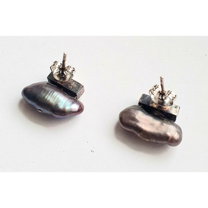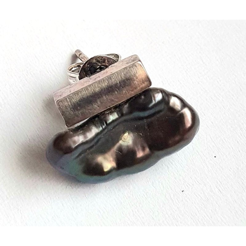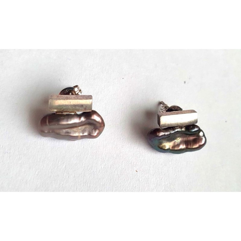 Cercei cu perle baroce naturale confentionati din metal alb, cu fluturasi de argint noi