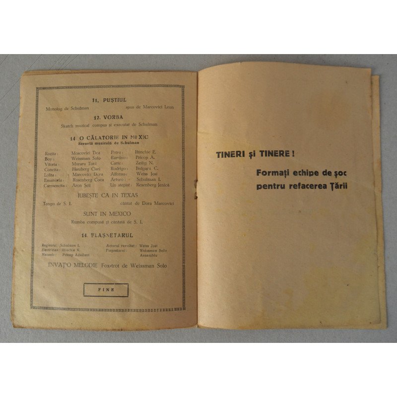 Tineretul progresist din Romania (infiintat in anul 1945), organizatia Buhusi, program revista muzicala.