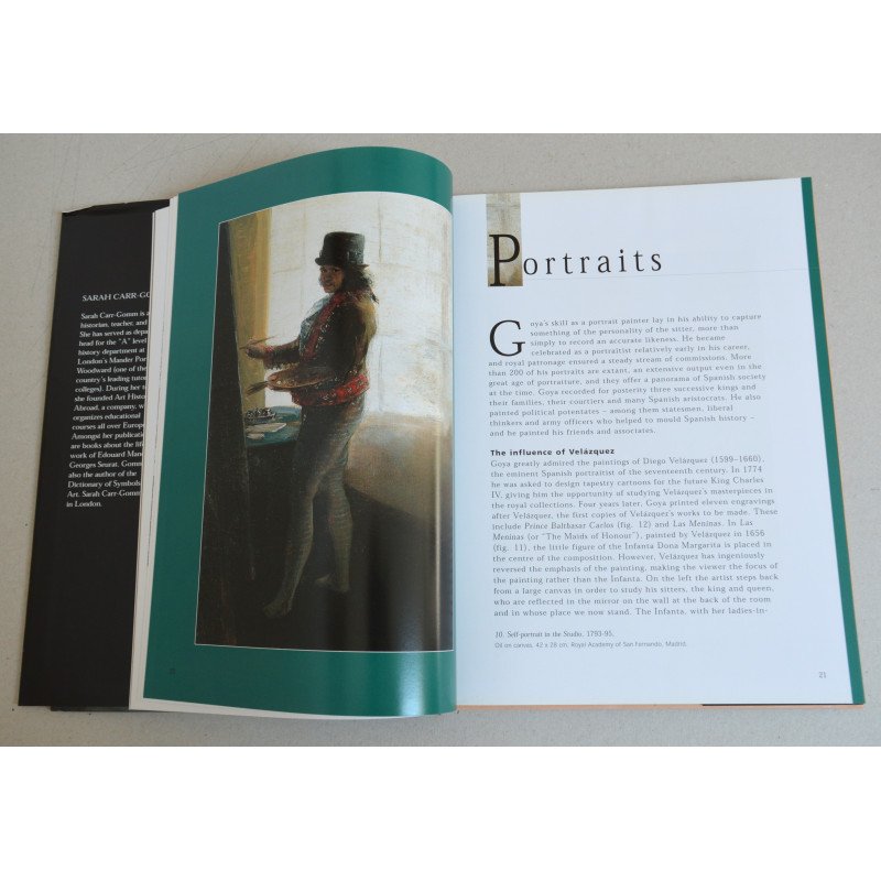 Francisco Goya y Lucientes (1746-1828) este unul dintre maeștrii incontestabili ai picturii spaniole din secolul al XIX-lea. Este adesea numit și „primul dintre moderni” datorită tehnicii sale îndrăznețe și convingerii că viziunea personală a artistului este mai importantă decât tradiția. În tinerețe, în 1775, a lucrat la Fabrica Regală de Tapiserie Sainte-Barbe din Madrid, unde a studiat capodoperele lui Velasquez, care l-a influențat foarte mult. După ce a devenit pictor de curte al regelui Carol al III-lea în 1786, a realizat acea serie de portrete, picturi religioase și de gen care i-au adus faimă și prosperitate. În 1799, copleșit de un profund pesimism, s-a izolat și și-a schimbat complet abordarea picturii. Noul său stil era îndrăzneț și aproape de caricatură. În timpul invaziei napoleoniene, și-a exprimat oroarea față de conflict în gravuri realiste despre atrocitățile războiului. Această carte prezintă o imagine de ansamblu cuprinzătoare asupra picturii, gravurii și cartoanelor pentru tapiserii ale lui Goya, cu ilustrații și text care acoperă principalele evenimente din viața sa.