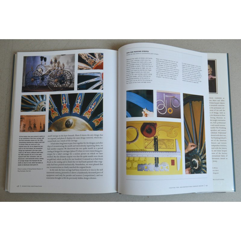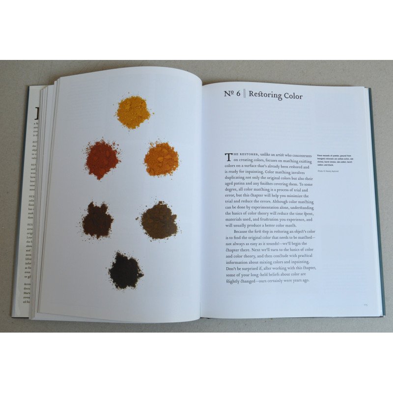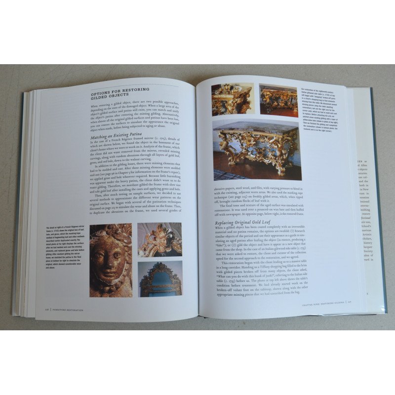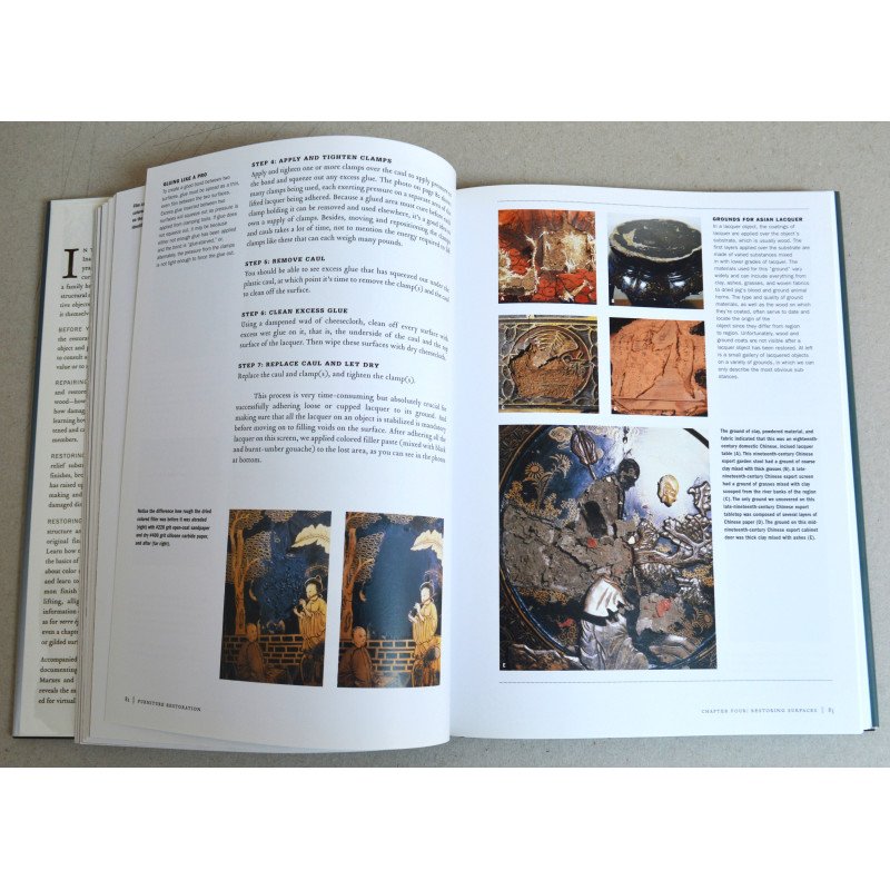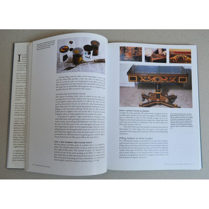 Autorii Ina Brosseau Marx și Allen Marx împărtășesc peste treizeci de ani de experiență în toate tipurile de restaurare a mobilei antice. Primul capitol oferă cititorilor o prezentare generală a restaurării și explică exact cum să-și dea seama când o piesă este suficient de valoroasă pentru a apela la un restaurator profesionist. Restul cărții îl ghidează pe cititor prin restaurarea și repararea mobilei de orice fel, analizând problemele comune ale diferitelor piese și câteva soluții rapide, precum și proprietățile lemnului, repararea tâmplăriei, restaurarea suprafețelor, realizarea matrițelor și a modelelor, restaurarea culorii, repararea furnirurilor, finisajelor și suprafețelor ornamentate și multe, multe altele. Peste 600 de fotografii color și zeci de fotografii „înainte și după” le permit cititorilor să vadă exact cum să repare orice este greșit fără a greși ei înșiși.