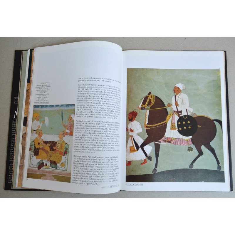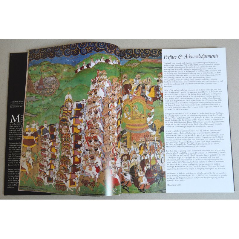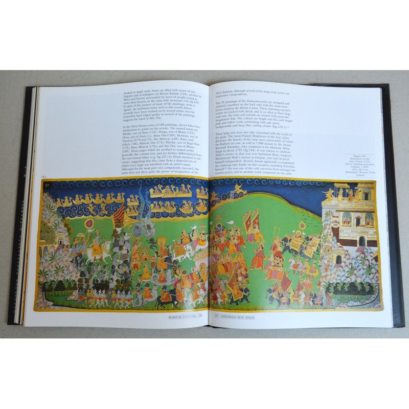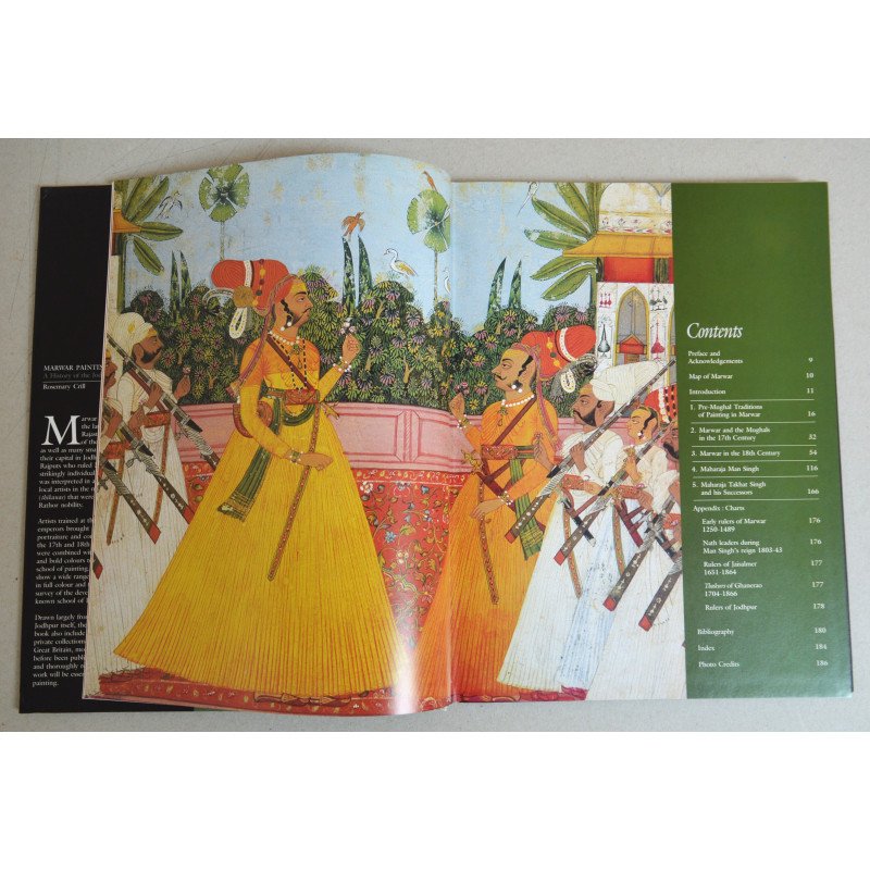 Marwar este numele istoric pentru vasta zonă din vestul Rajasthanului, care include o mare parte a deșertului Thar, precum și multe orașe și sate mai mici. În capitala lor, Jodhpur, clanul Rathor al Rajput-ilor, care a condus Marwar, a dezvoltat un stil de pictură izbitor de individual, care a fost interpretat într-o multitudine de moduri diferite de către artiștii locali din numeroasele mici fiefuri (thikanas) care erau pământurile ancestrale ale nobilimii Rathor. Artiștii instruiți la curtea împăraților Mughal au adus concepte sofisticate de portretistică și compoziție la Jodhpur în secolele al XVII-lea și al XVIII-lea, iar aceste idei au fost combinate cu stiluri locale distinctive și culori îndrăznețe pentru a forma o școală de pictură unică și plină de viață. Această carte este prima care prezintă o gamă largă a acestor picturi vibrante, colorate, și oferă o imagine completă a dezvoltării acestei școli puțin cunoscute de pictură din Rajasthan. Provenind în mare parte din colecția regală din Jodhpur, picturile discutate în carte includ și exemple din colecții publice și private din India, SUA și Marea Britanie, majoritatea nefiind publicate până acum. Frumos ilustrată și temeinic documentată, această lucrare importantă va fi esențială pentru toți iubitorii de pictură indiană.