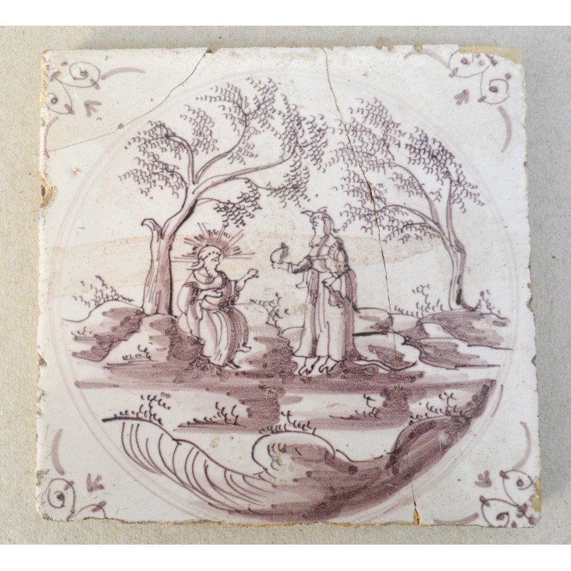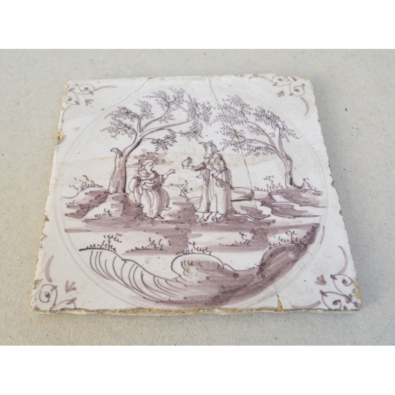 "Scena biblica" placa ceramica de Delft pictata manual, sec 18.