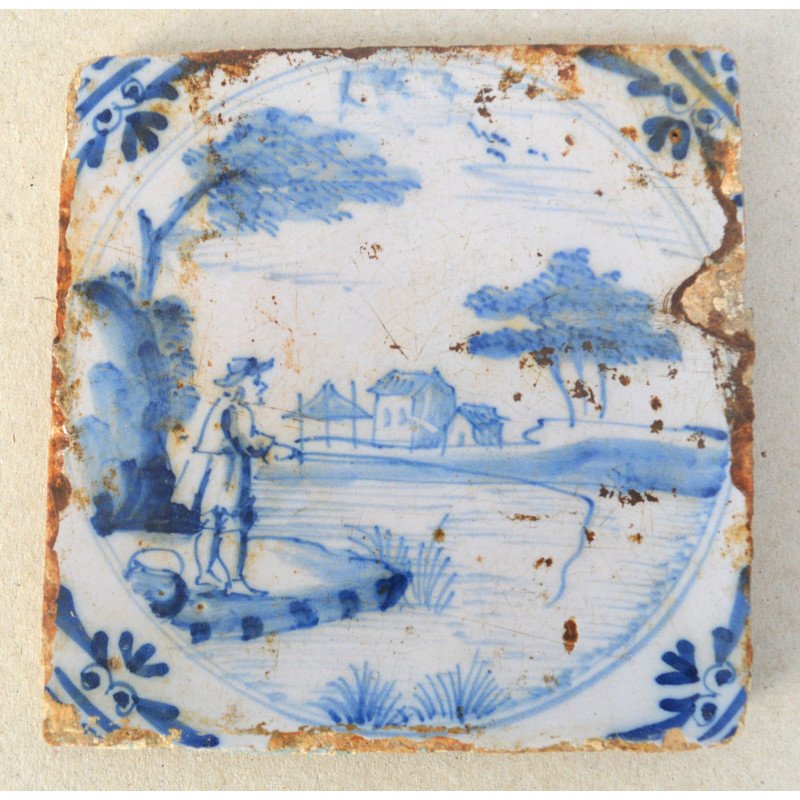 "Pescar" placa ceramica de Delft pictata manual, sec 18.