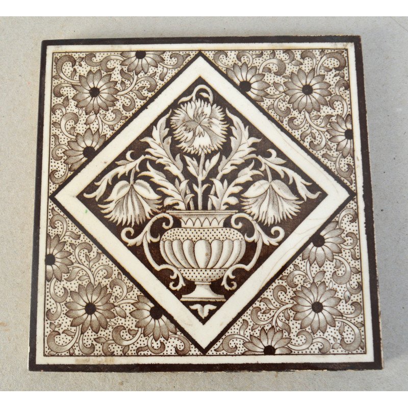 Placa ceramica Minton Aesthetic Movement cu motive florale cca 1885, (exemplarul nr.1).