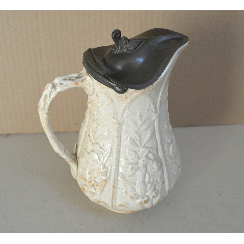 Cana de ceramica glazurata cu capac de cositor Anglia cca 1850.