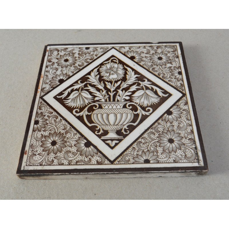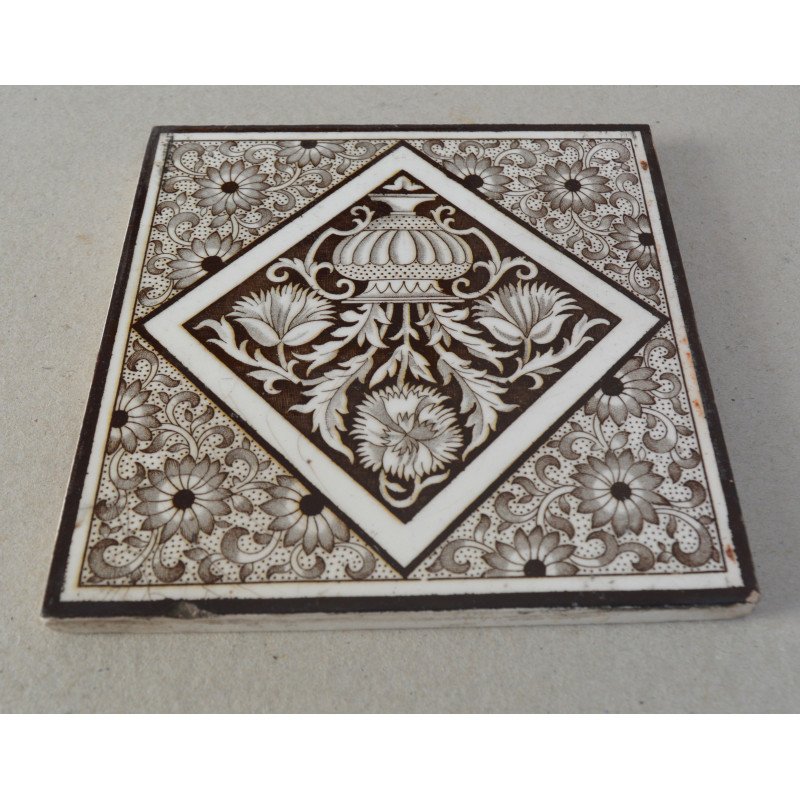 Placa ceramica Minton Aesthetic Movement cu motive florale cca 1885, (exemplarul nr.4).