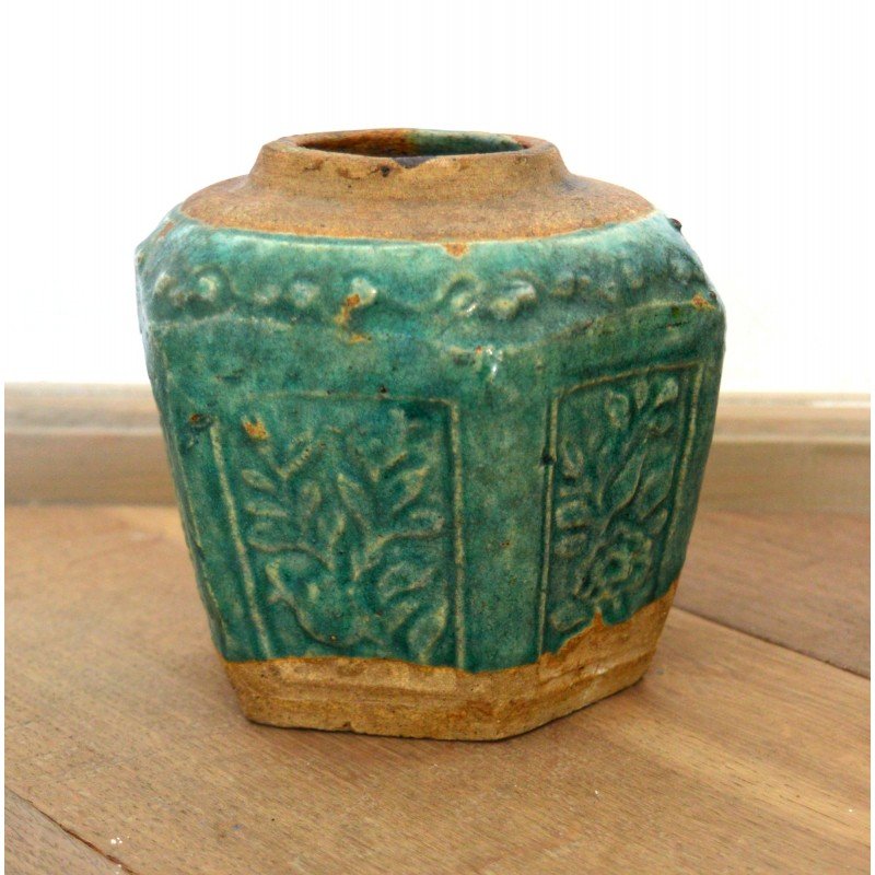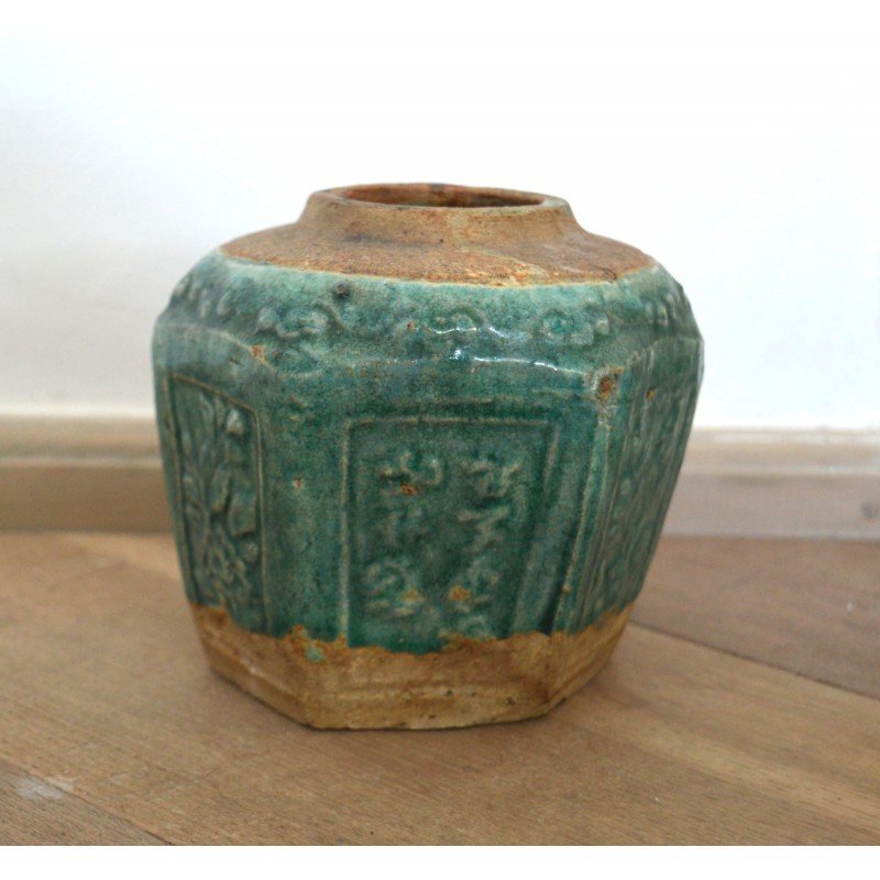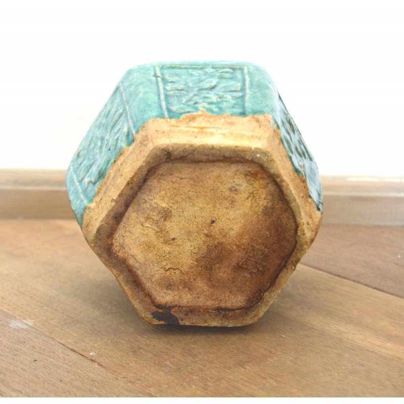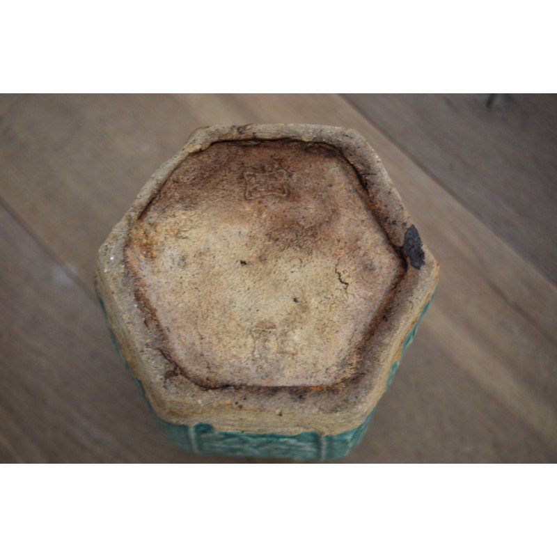 Recipient ceramica glazurata provenienta China perioada anii 1900, cu marcaj pe baza