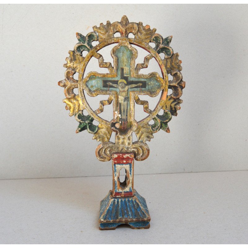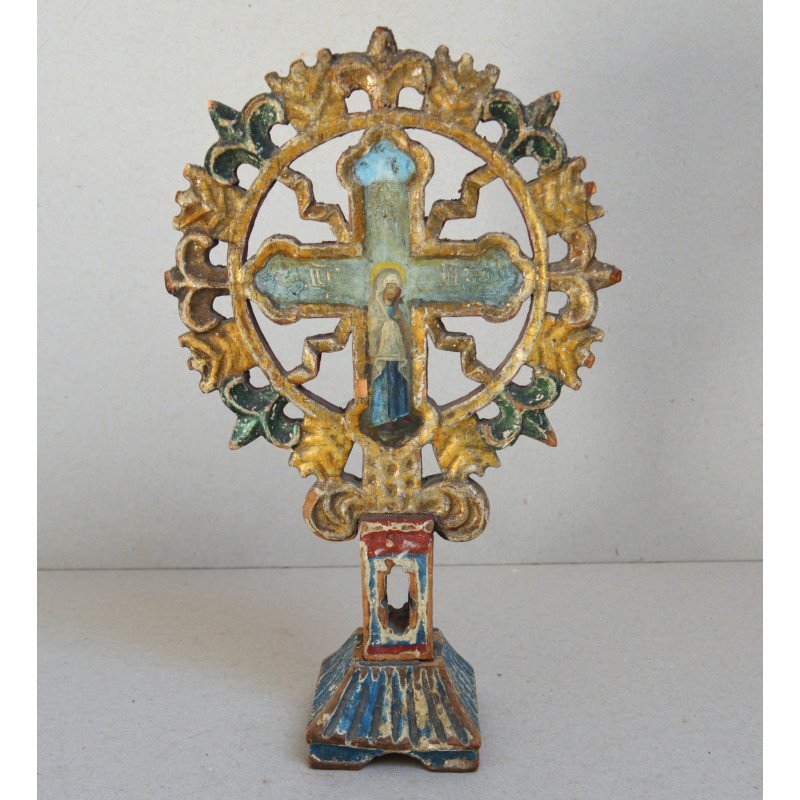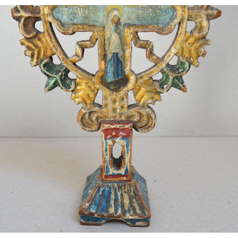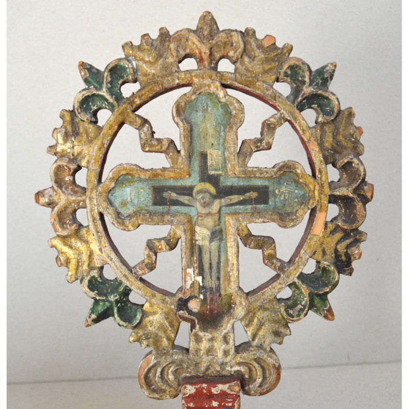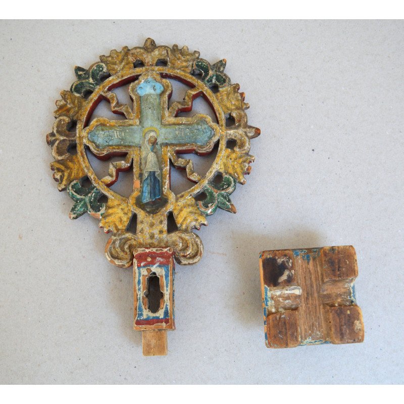 Cruce de binecuvantare lemn sculptat si pictat sec 19