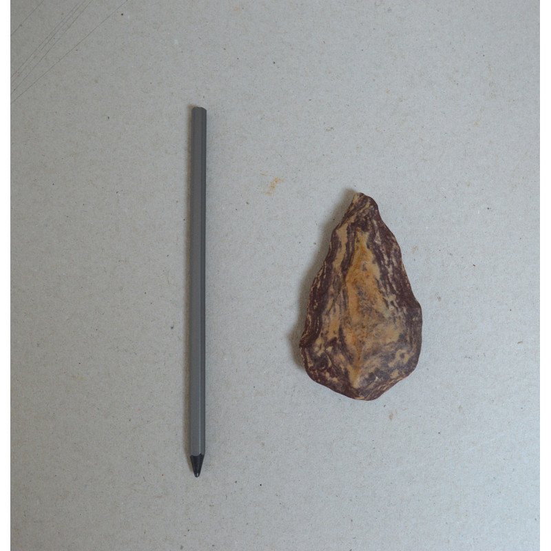 Unealta este un bifacial musterian, realizat din cuartit. Artefactul provine din Libia și are dimensiuni de aproximativ 9,5x6x2,5 cm.