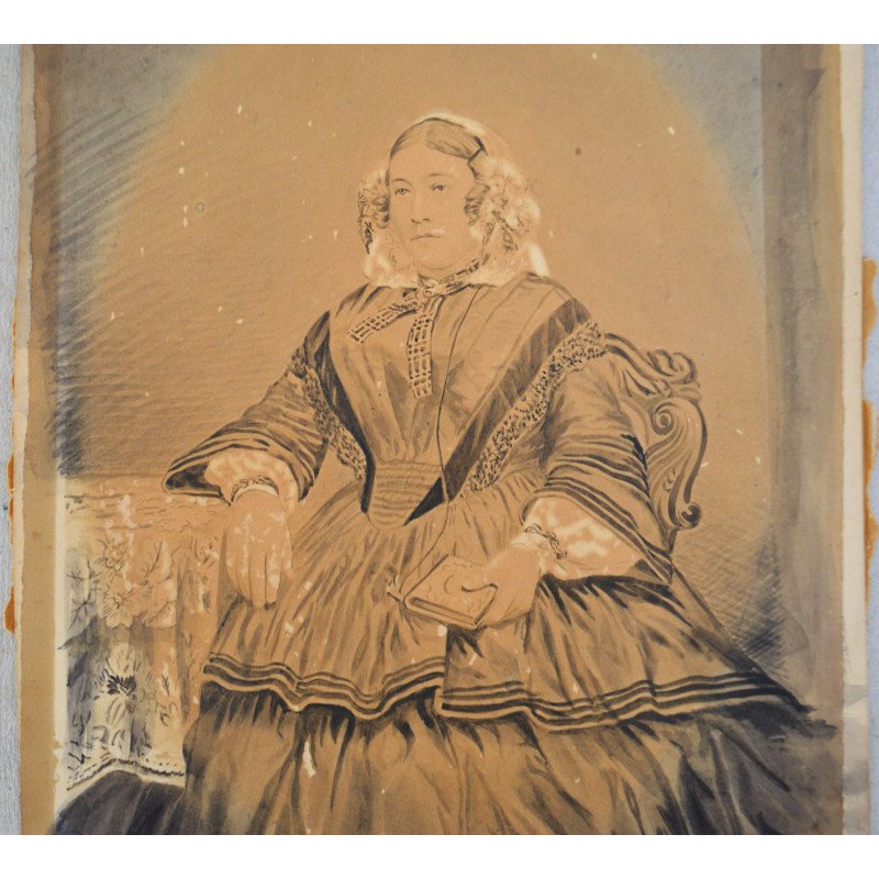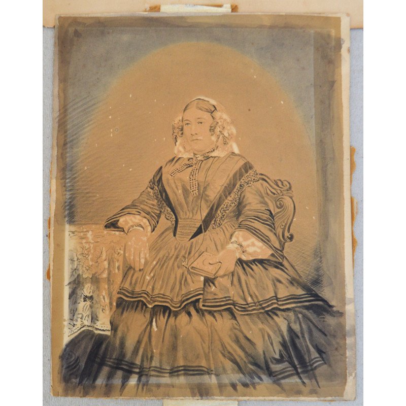 Portret de femeie cca 1860, acuarela peste fotografie.