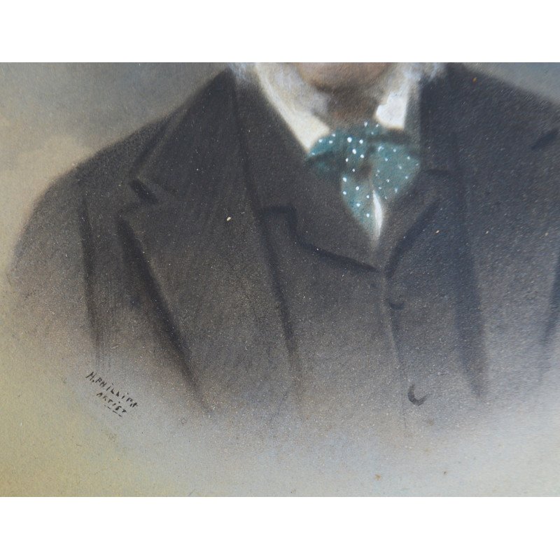 Portret de barbat tehnica mixta (tempera peste fotografie) sec 19.