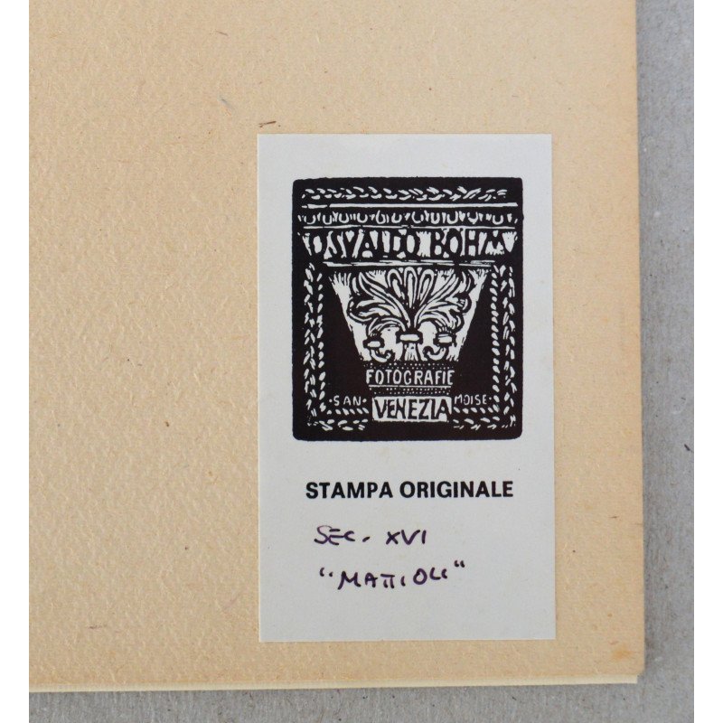 Pe verso eticheta cu numele lui Osvaldo Bohm, faimos fotograf si colectionar venetian caruia i-a apartinut aceasta gravura.