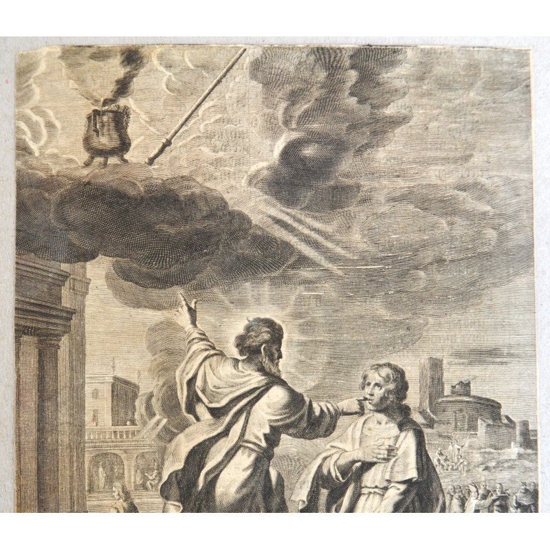 Matthias Scheits "Viziunea lui Ieremia despre o oală care fierbe" gravura veche 1672