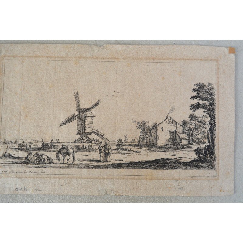 Stefano della Bella "Peisaj cu moara de vant" gravura 1643.
