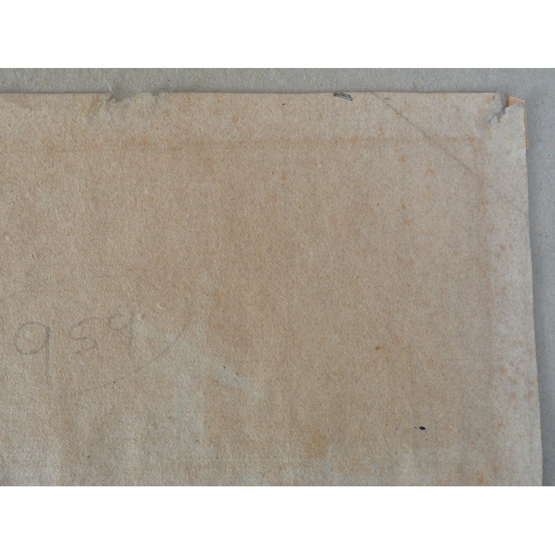 Are doua colturi rupte, marginea de sus la partea centrala putin rupta si o mica parte a hartiei lipsa, la marginea de jos acelasi lucru, marginea din stanga este indoita.