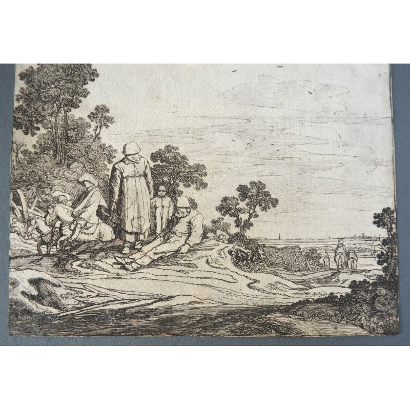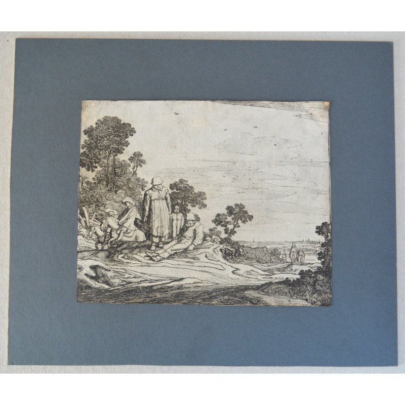 Pieter de Molijn "Peisaj cu personaje" gravura veche 1626.