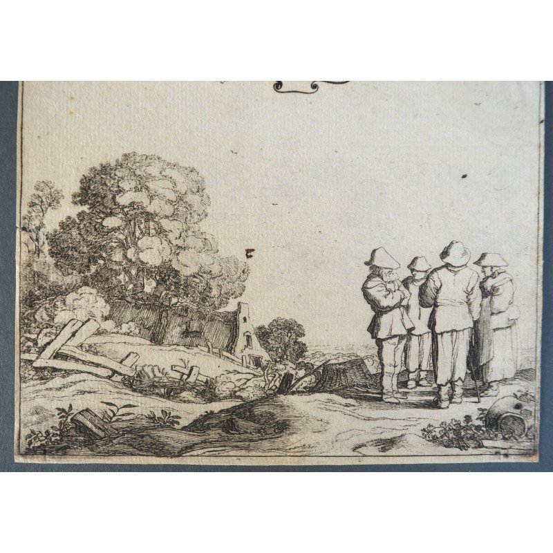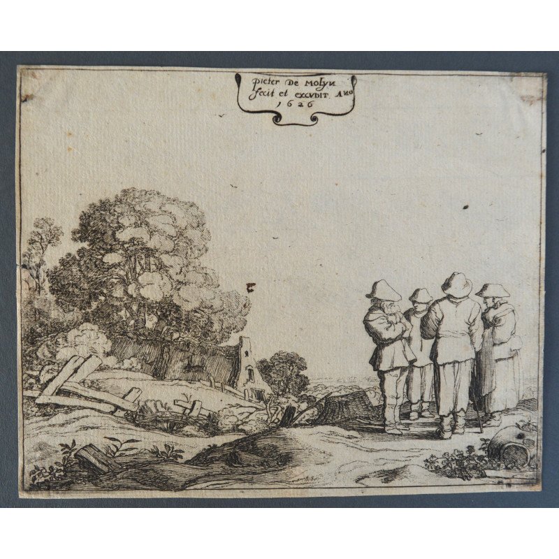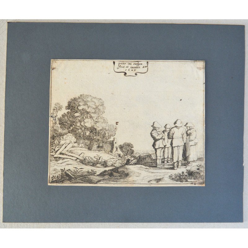 Pieter de Molijn "Peisaj cu personaje" gravura veche 1626.