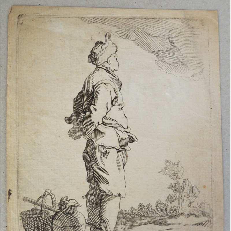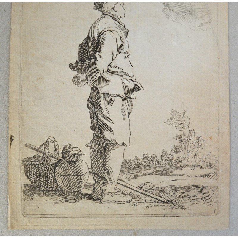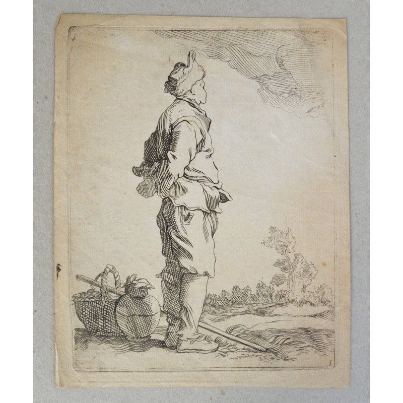 Abraham Bloemaert "Barbat cu toiag" gravura veche pe hartie manuala cu filigran.