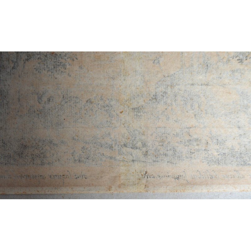 Marginea de jos la partea de mijloc este putin rupta, indoita in coltul din stanga jos, perforatie a hartiei in partea stanga sus.