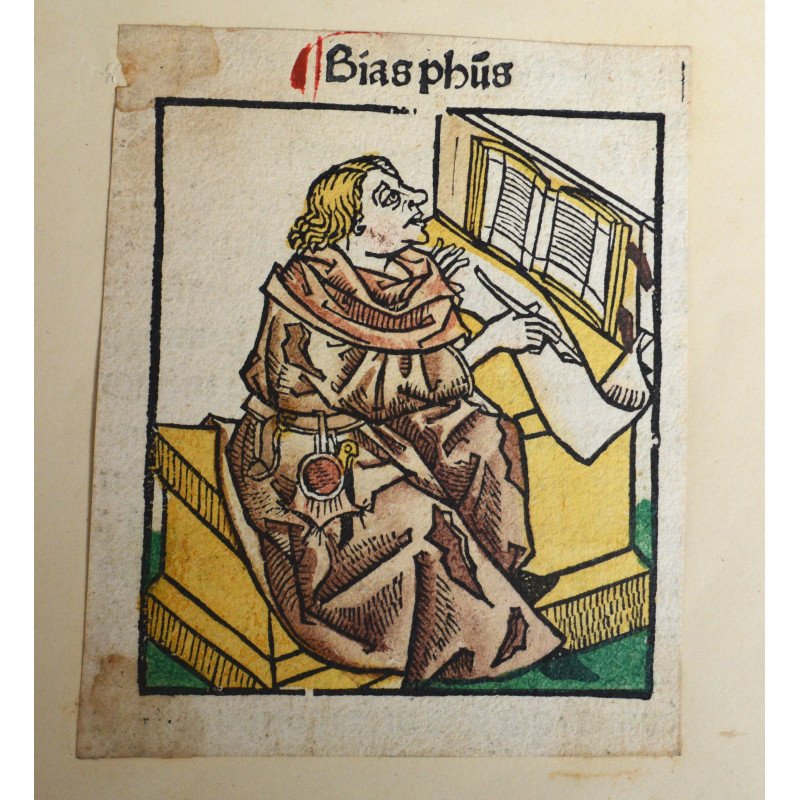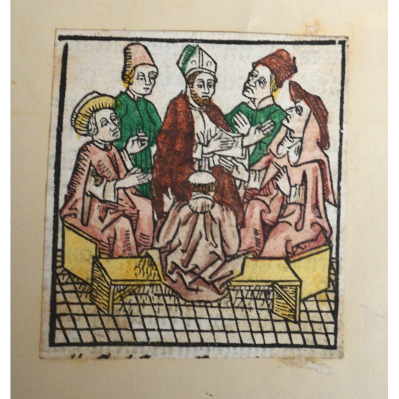 Patru xilogravuri incunabulare din spațiul nord-german și francez colorate manual cca. 1475–1489, montate pe suport din secolul al XIX-lea