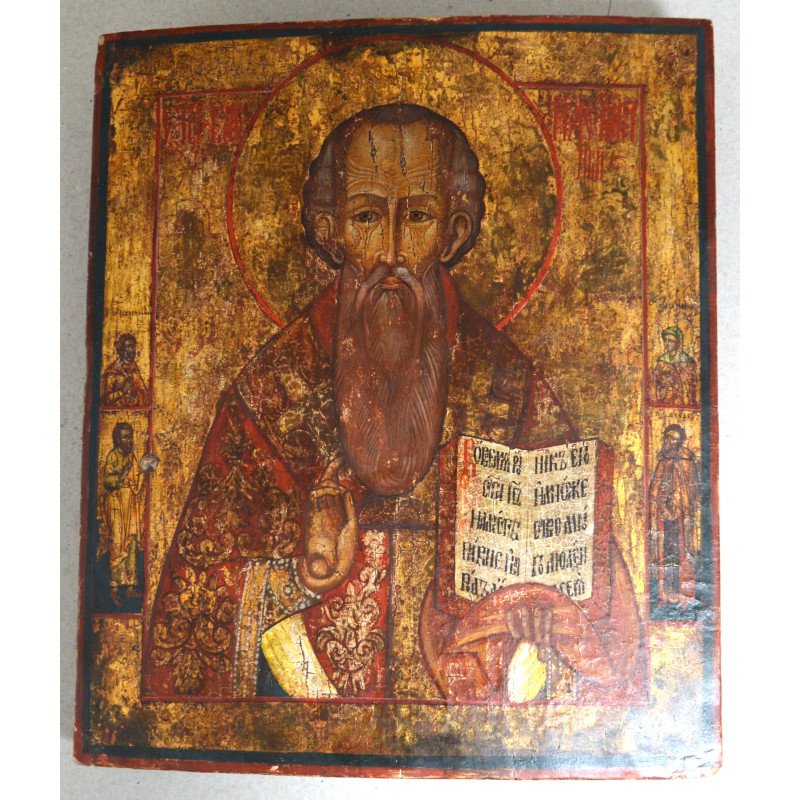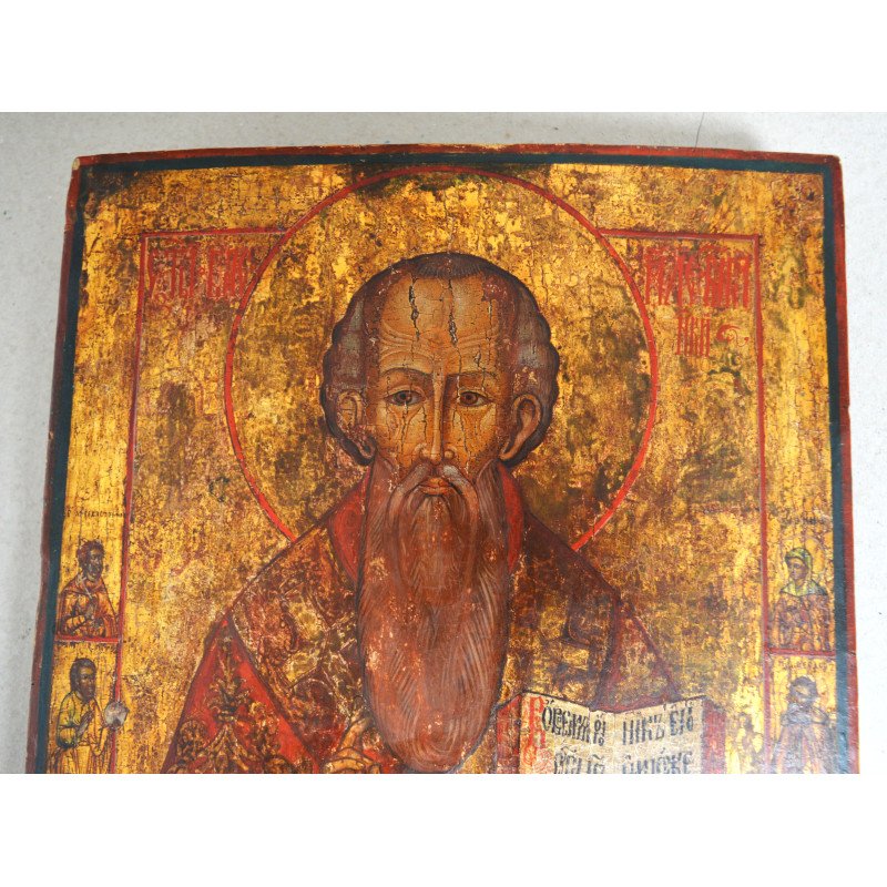 "Sfantul Vasile cel Mare" icoana ruseasca tempera si foita de aur pe lemn sec 18 (a doua jumatate).