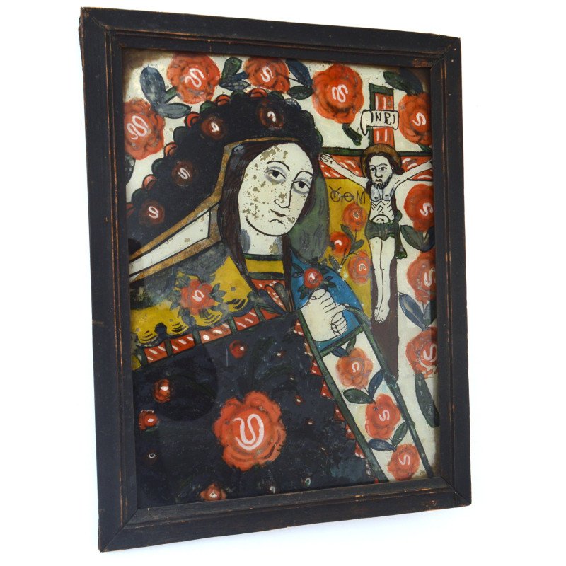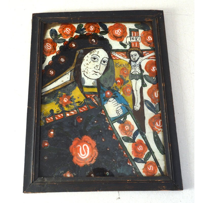 "Maica Domnului Indurerata" icoana pe sticla Gherla sfarsit de sec XIX.