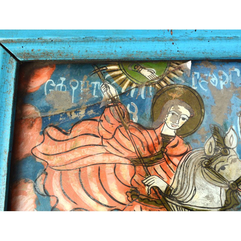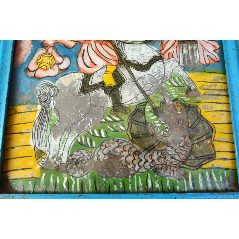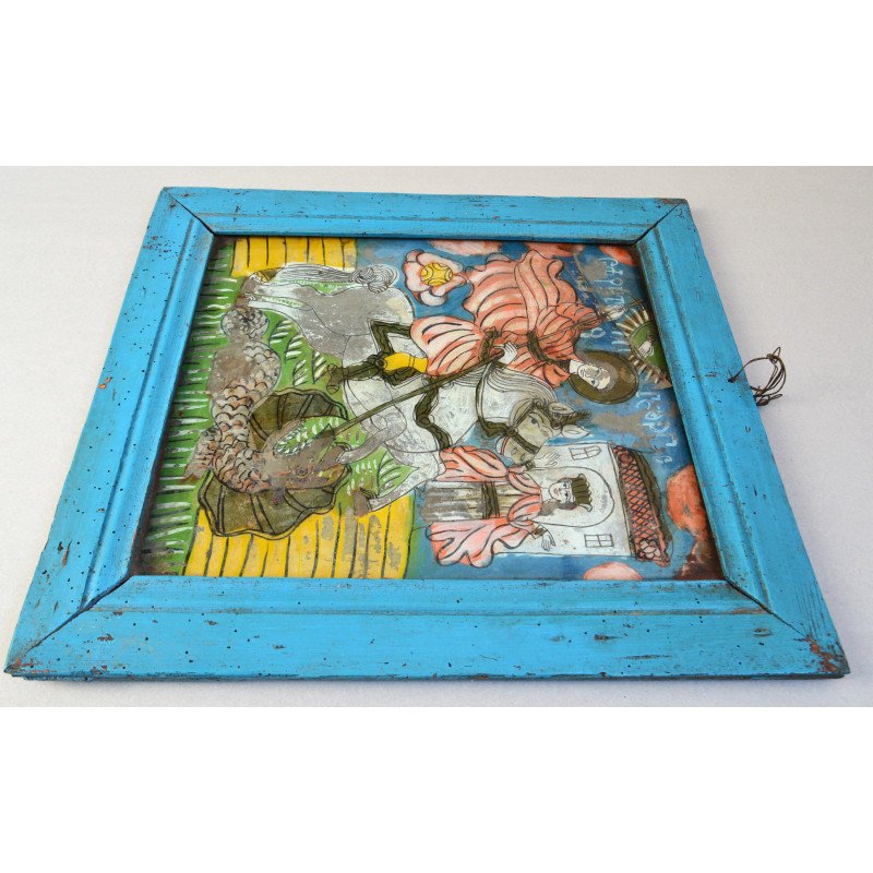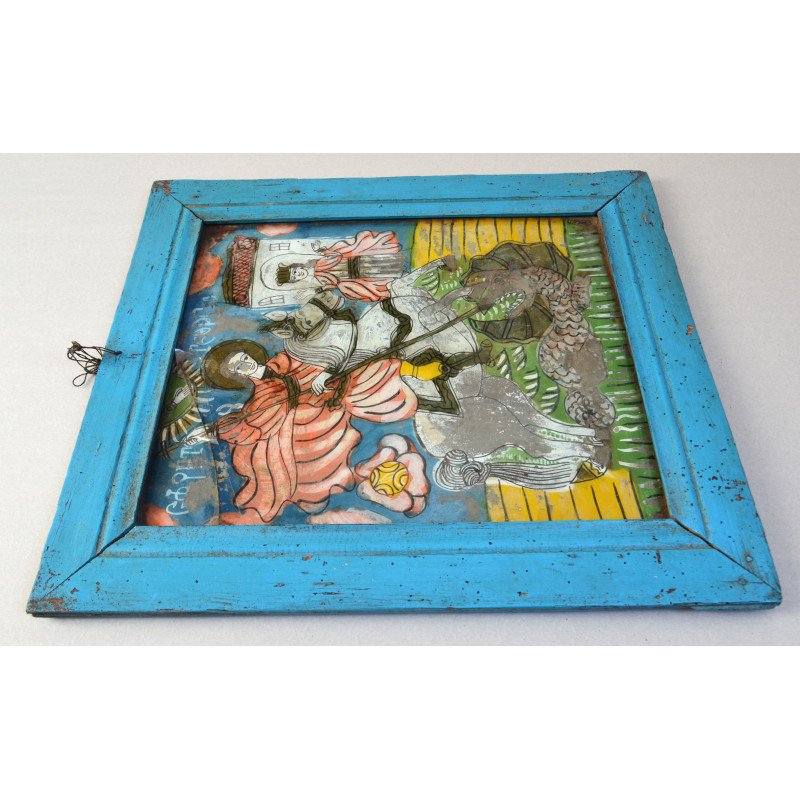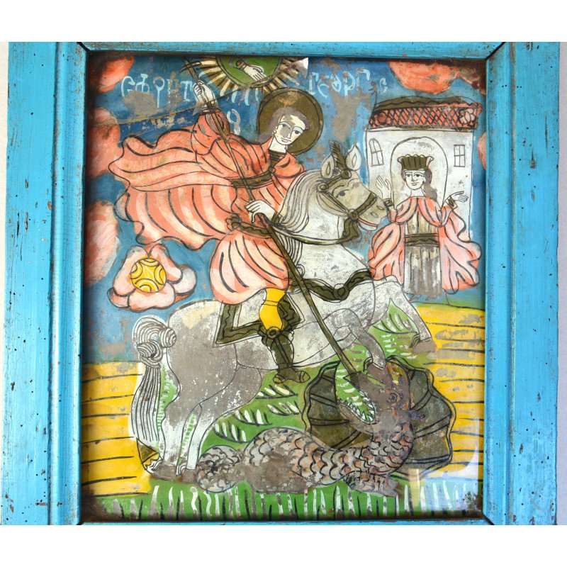 "Sfantul Gheorghe" icoana pe sticla Scheii Brasovului sec 19.