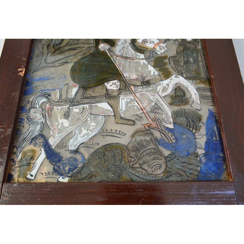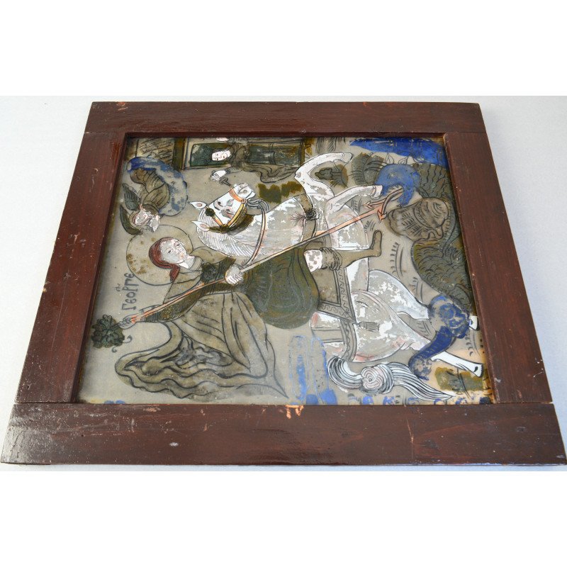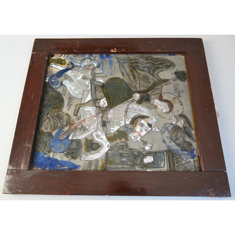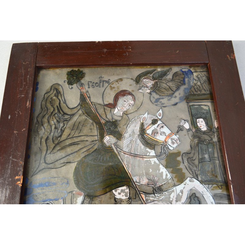 "Sfantul Gheorghe" icoana pe sticla atelierul familiei Oancea, Saliste, prima jumătate a sec. XIX.